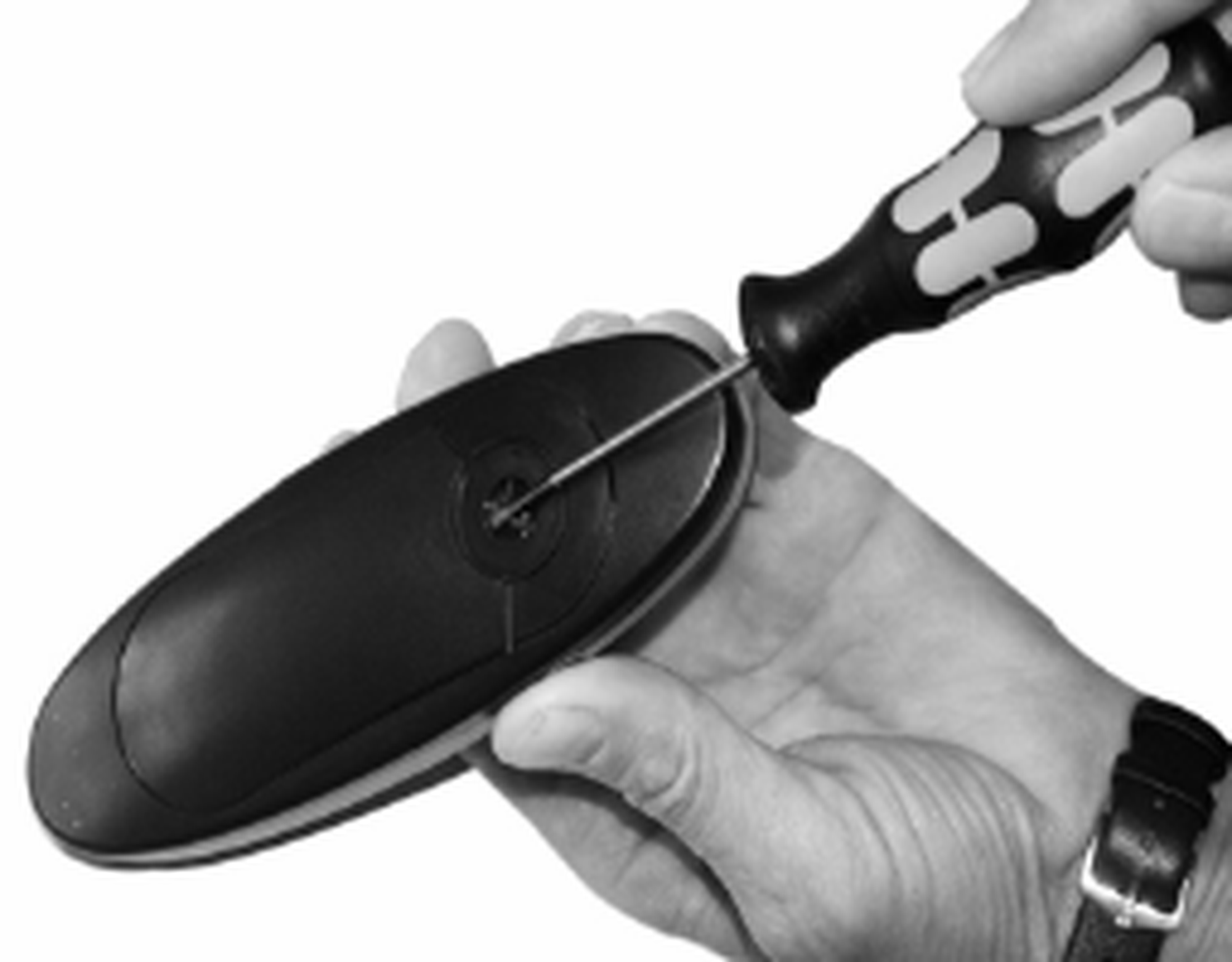 Schrauben Sie mit einen Schraubenzieher die Schraube auf der Rückseite des Handsets heraus.