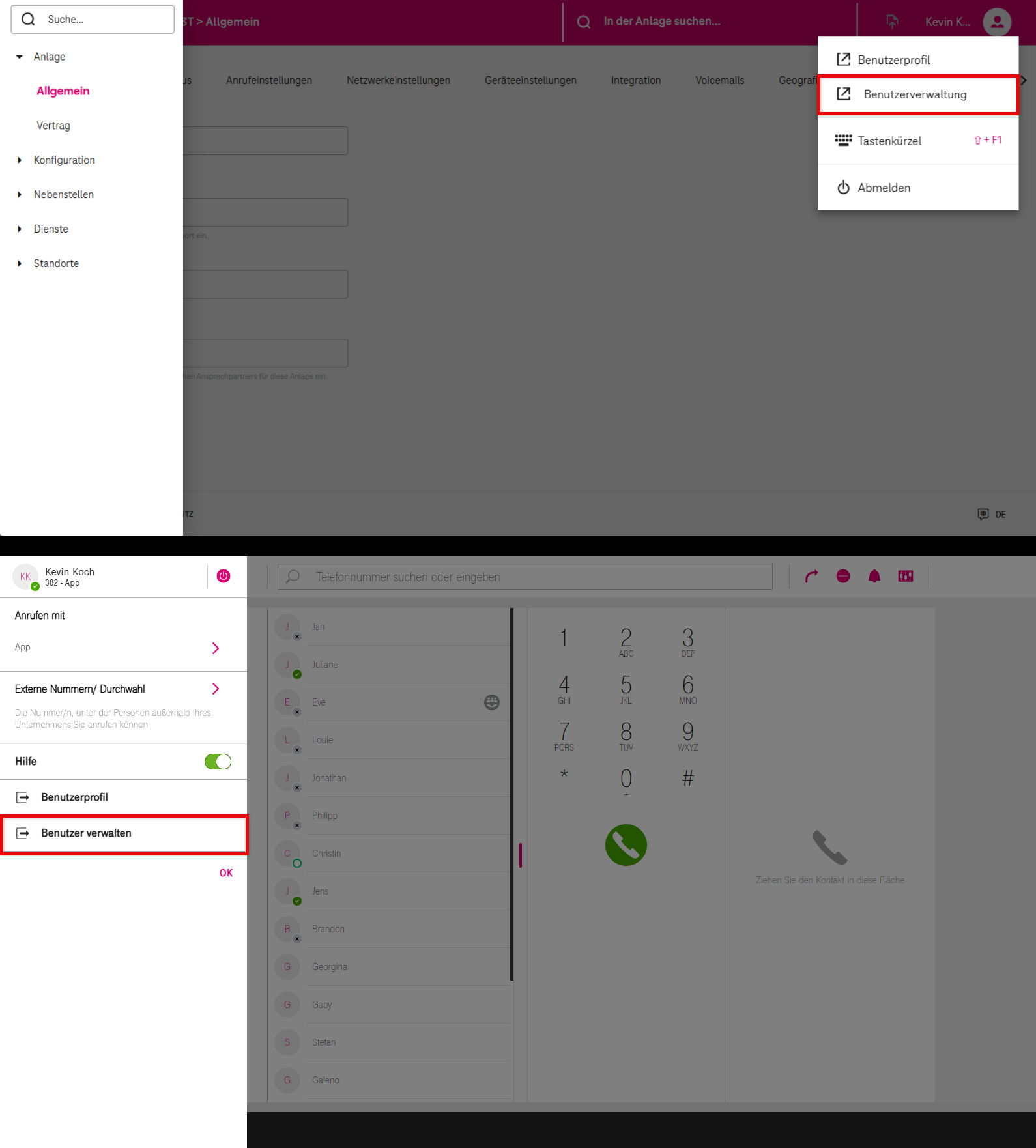 Klicken Sie auf Benutzer verwalten (Web-/Desktop-App) / Benutzerverwaltung (Admin-Portal).
