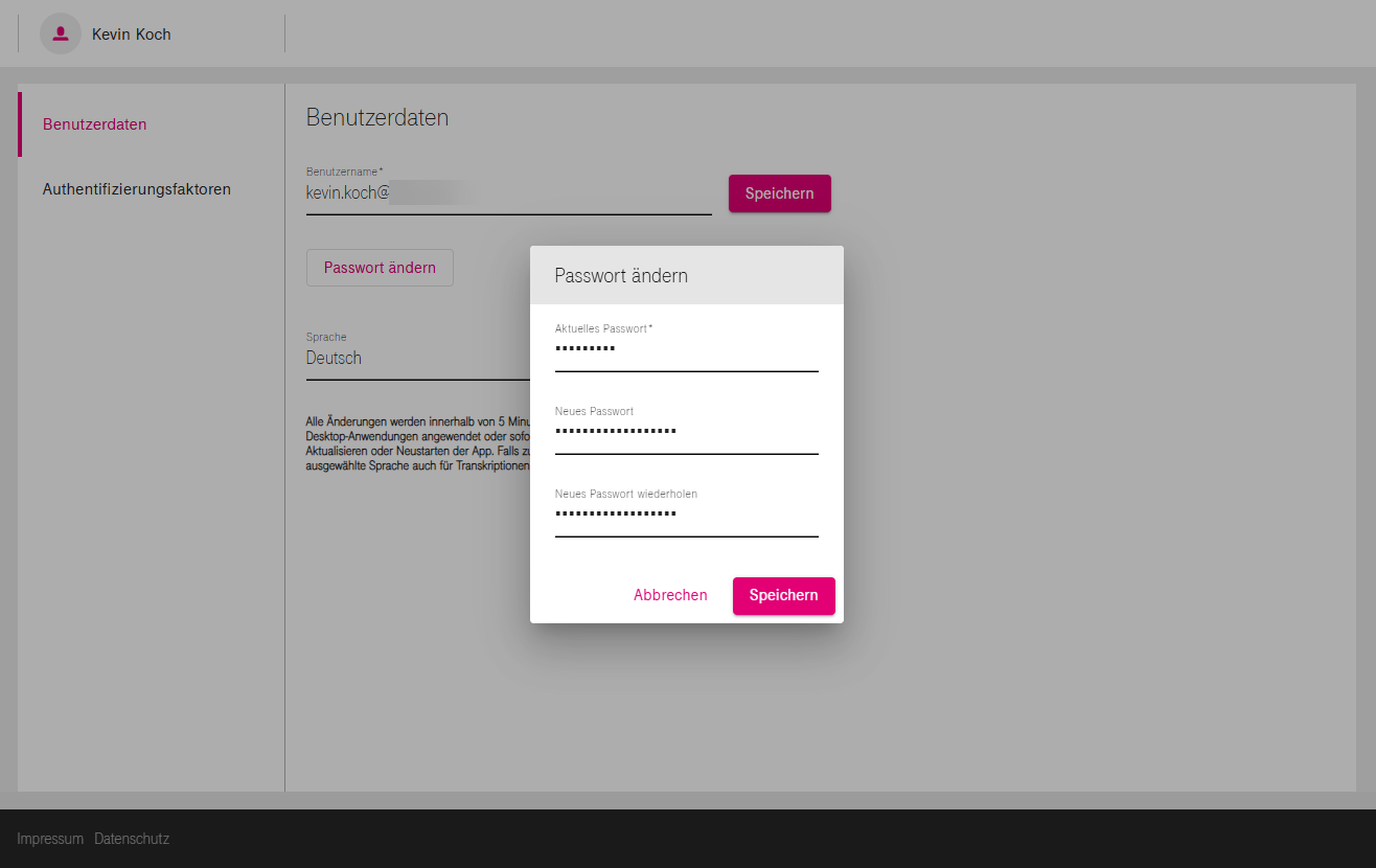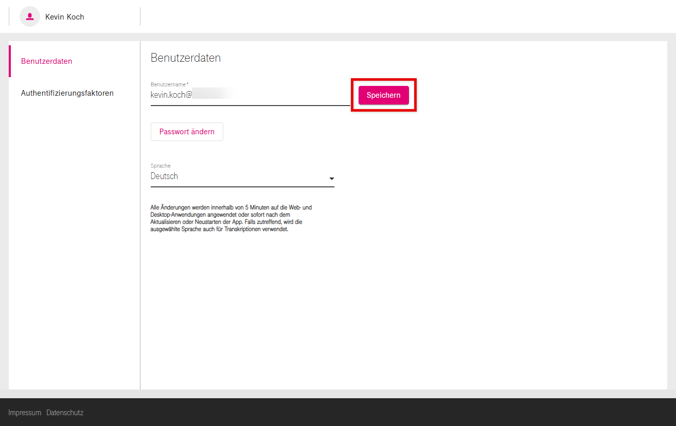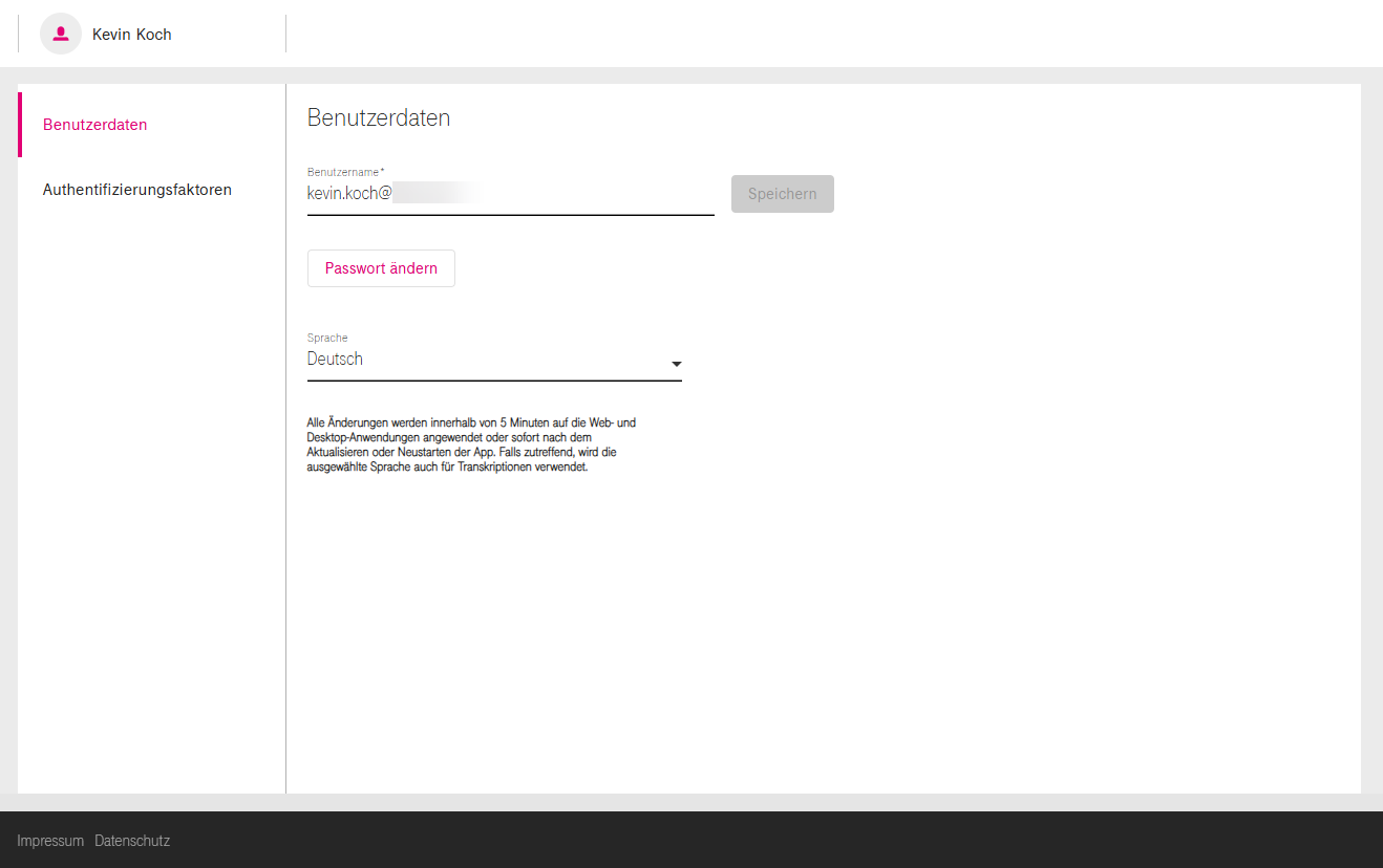 Die User Profile Application ist das globale Benutzerprofil für die NFON X powered by Telekom-App-Suite.