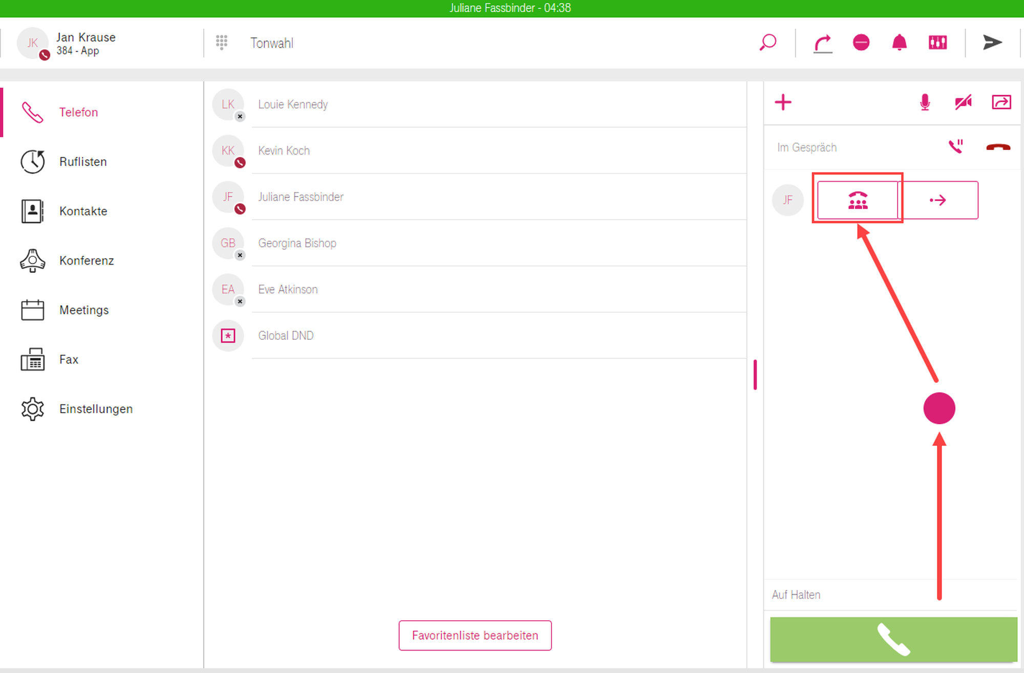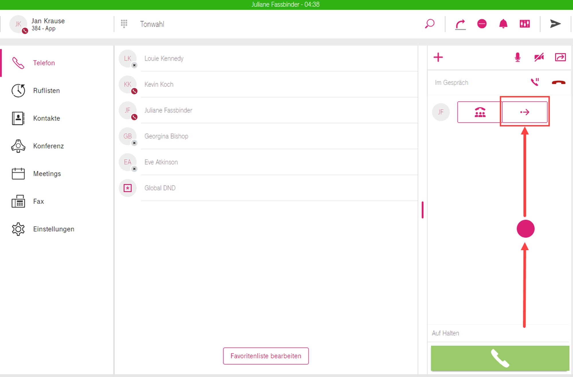 *Die Favoritenliste entspricht der Liste der BLF-Tasten Ihres Endgeräts. Falls Sie keine BLF-Tasten konfiguriert haben oder der Benutzer neu angelegt wurde, ist dieses Feld leer.