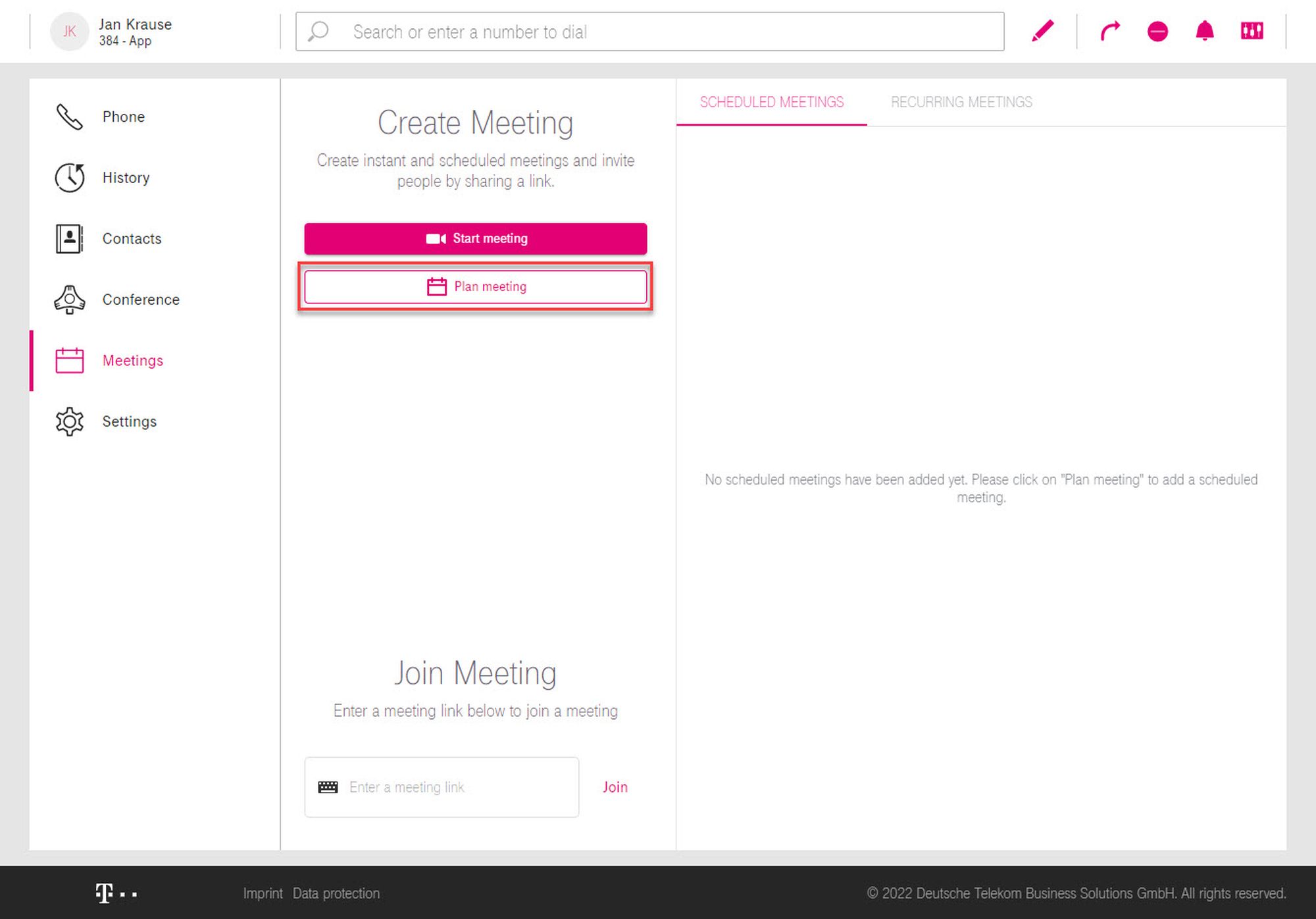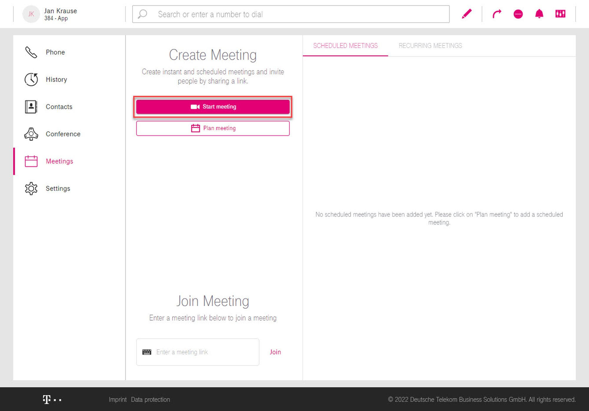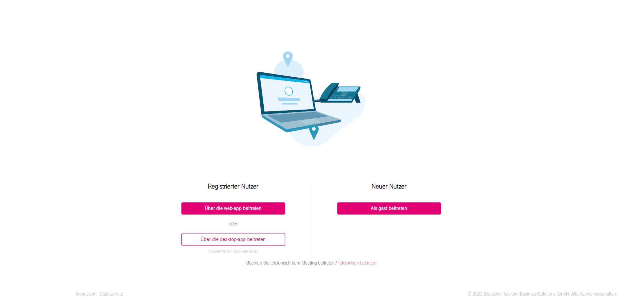 Wenn Sie ein NFON X powered by Telekom Konto haben, kopieren Sie den Link in den Browser und melden Sie sich mit Ihrem Konto an. Sie können dem Meeting in der Web-App oder in der NFON X powered by Telekom Desktop-App beitreten.