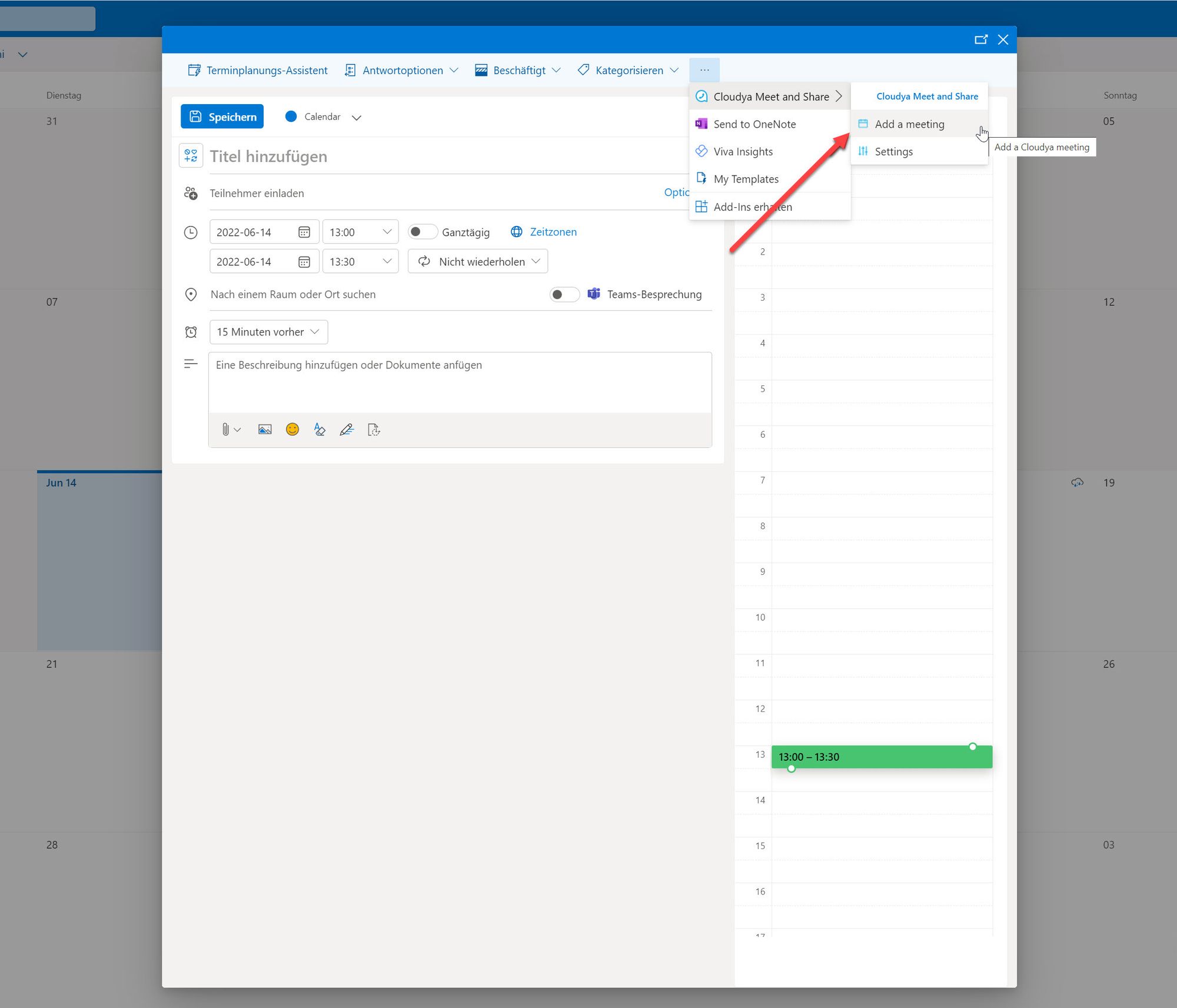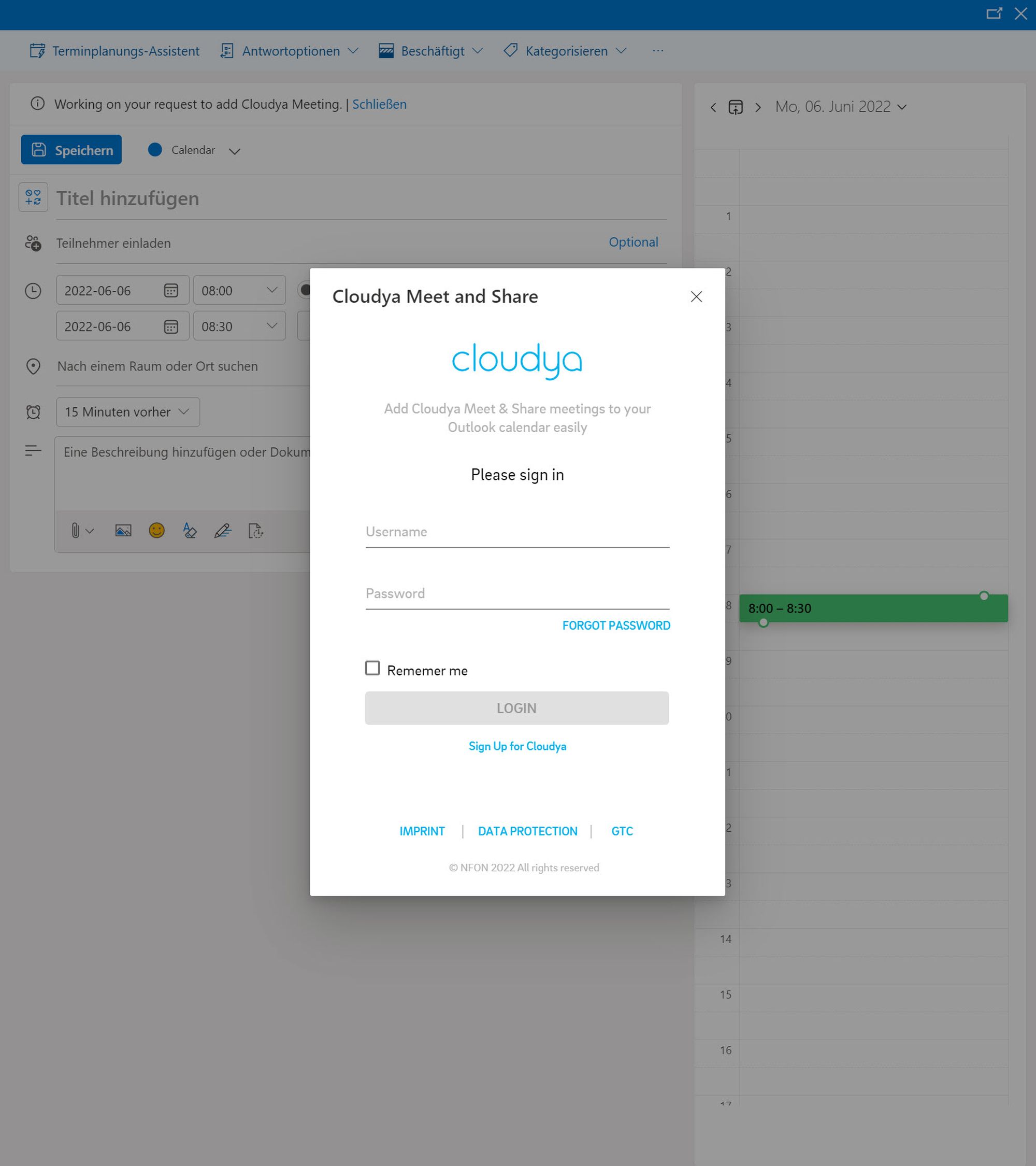Ein NFON X powered by Telekom Meet & Share Meeting in Outlook erstellen