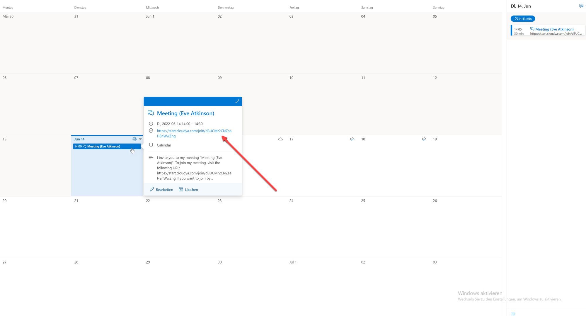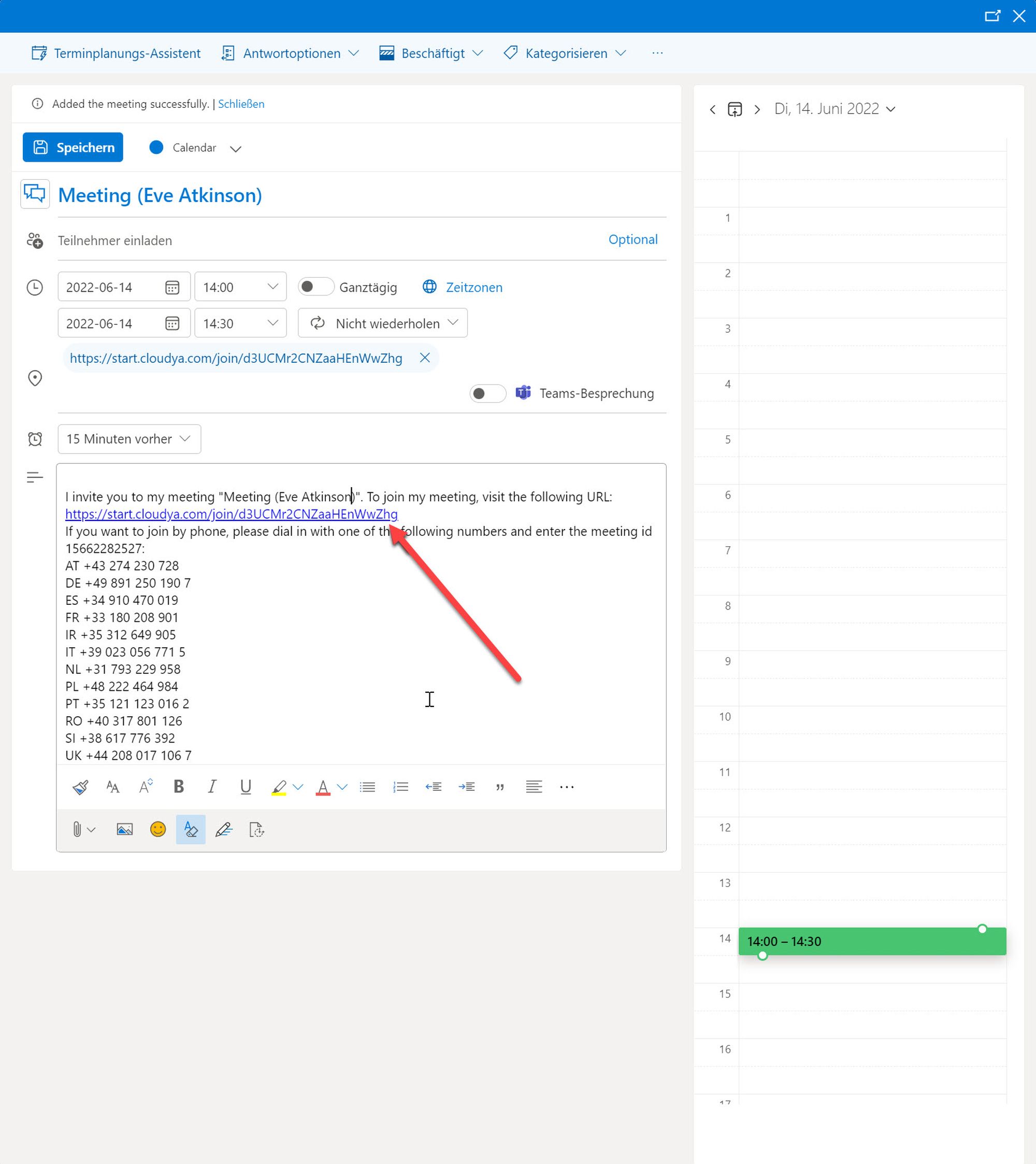 4. Eine URL für Ihr NFON X powered by Telekom-Meeting wurde Ihrem Termin automatisch hinzugefügt.