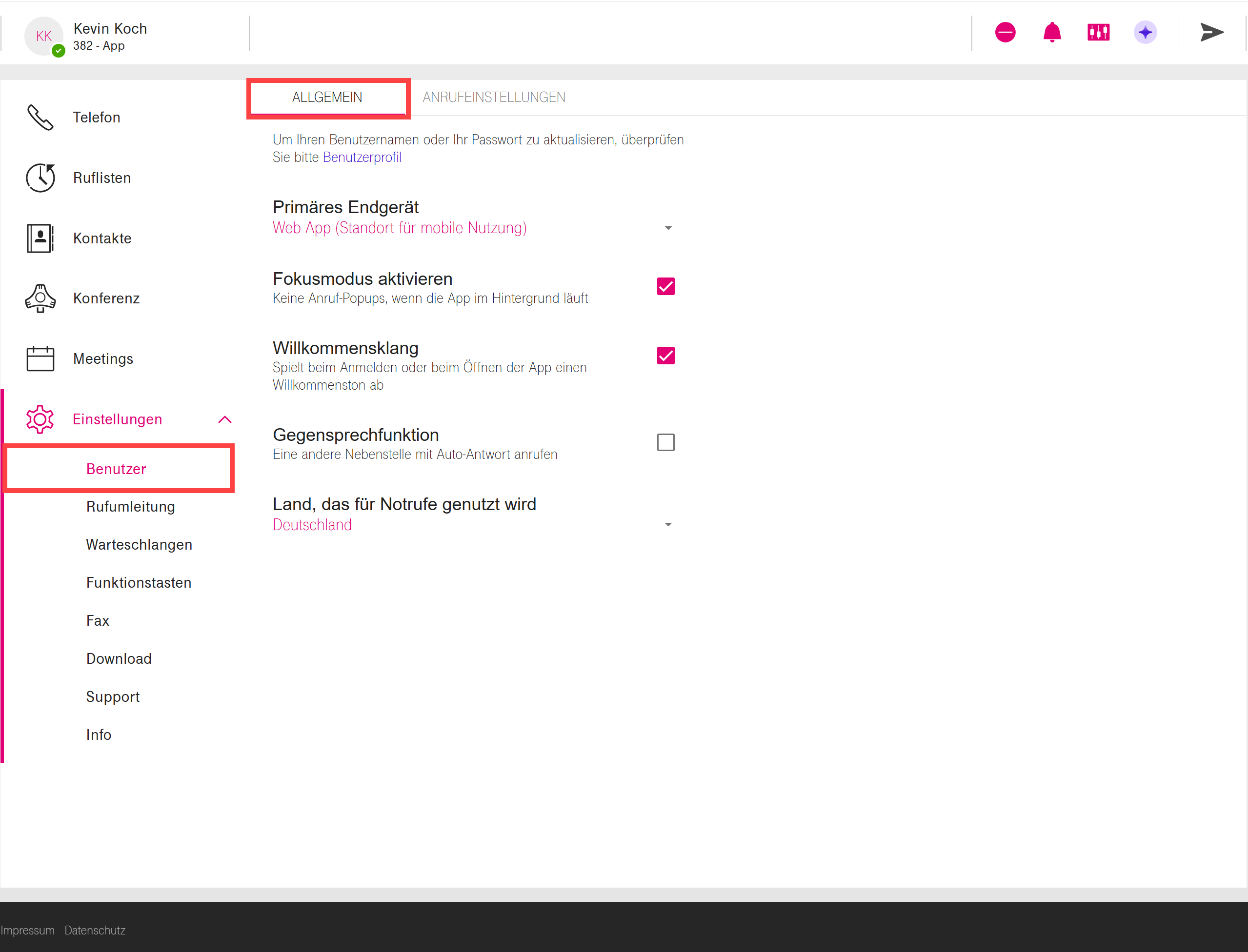 Standardmäßig ist die App als Ihr primäres Endgerät eingestellt. Das bedeutet, dass bei einem eingehenden Anruf die App den Anruf anzeigt und klingelt. Sollten Sie dies ändern möchten, ändern Sie das ausgewählte Endgerät.