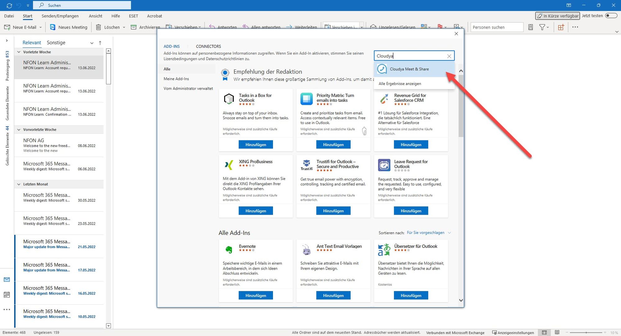 Das NFON X powered by Telekom Meet & Share Add-in in der Outlook Desktop App installieren
