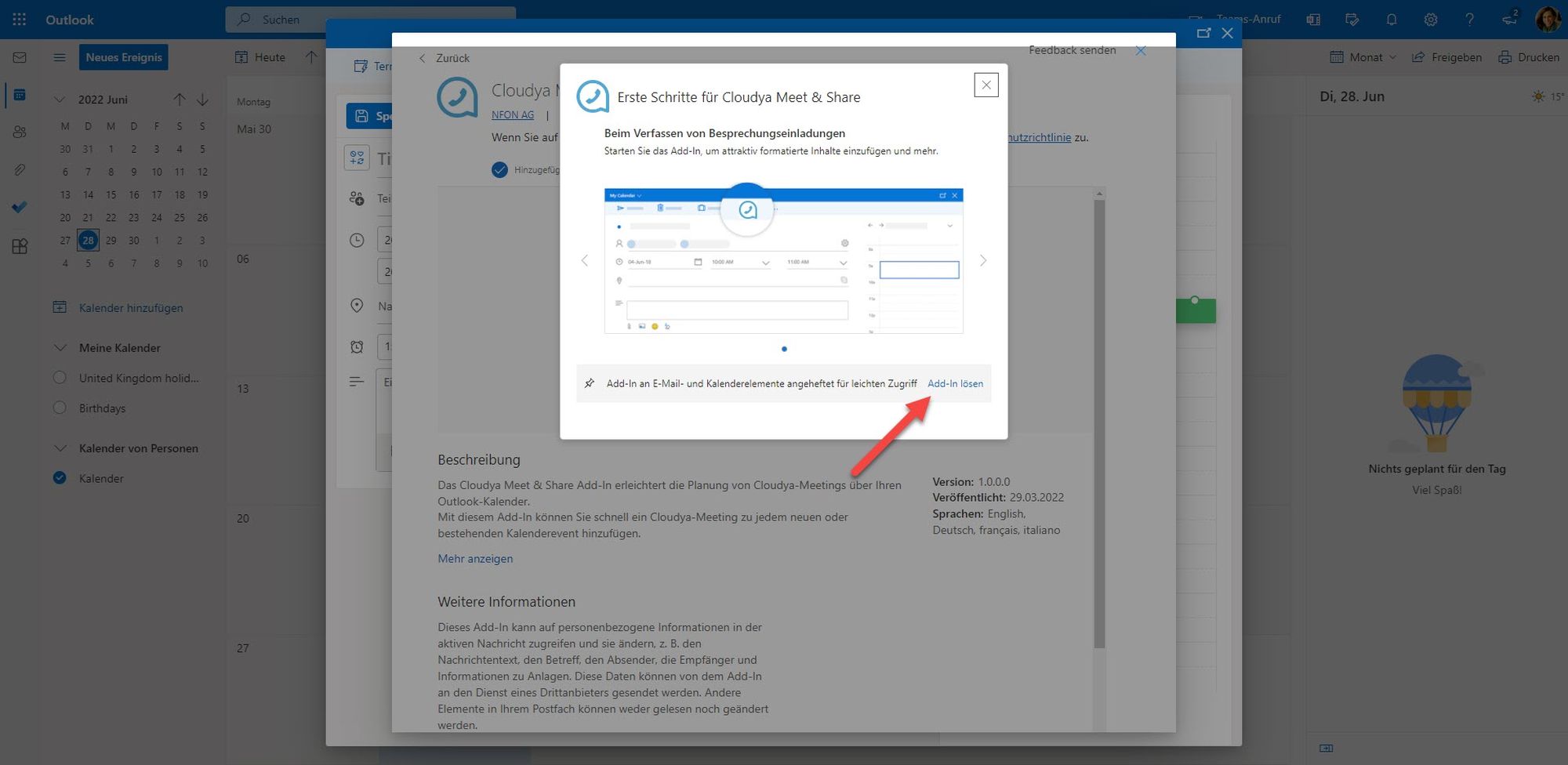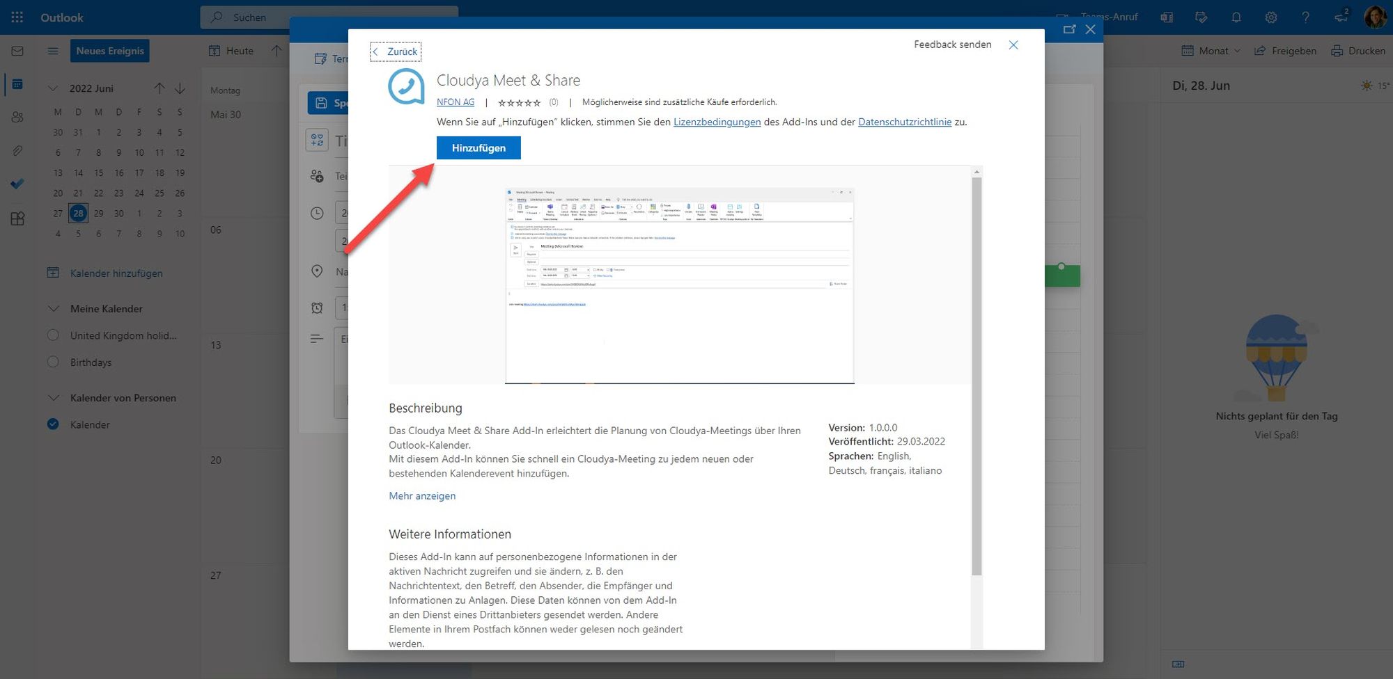 Das NFON X powered by Telekom Meet & Share Add-In in der Outlook Web App installieren