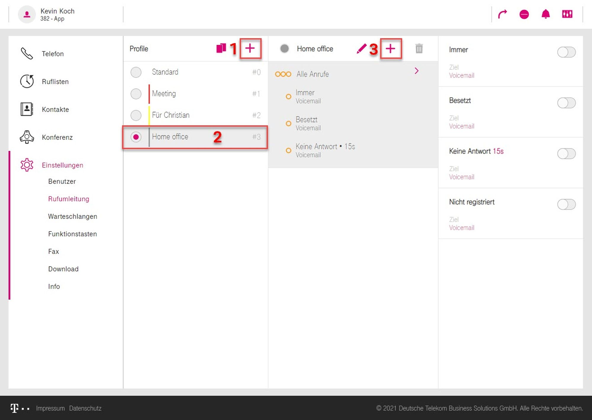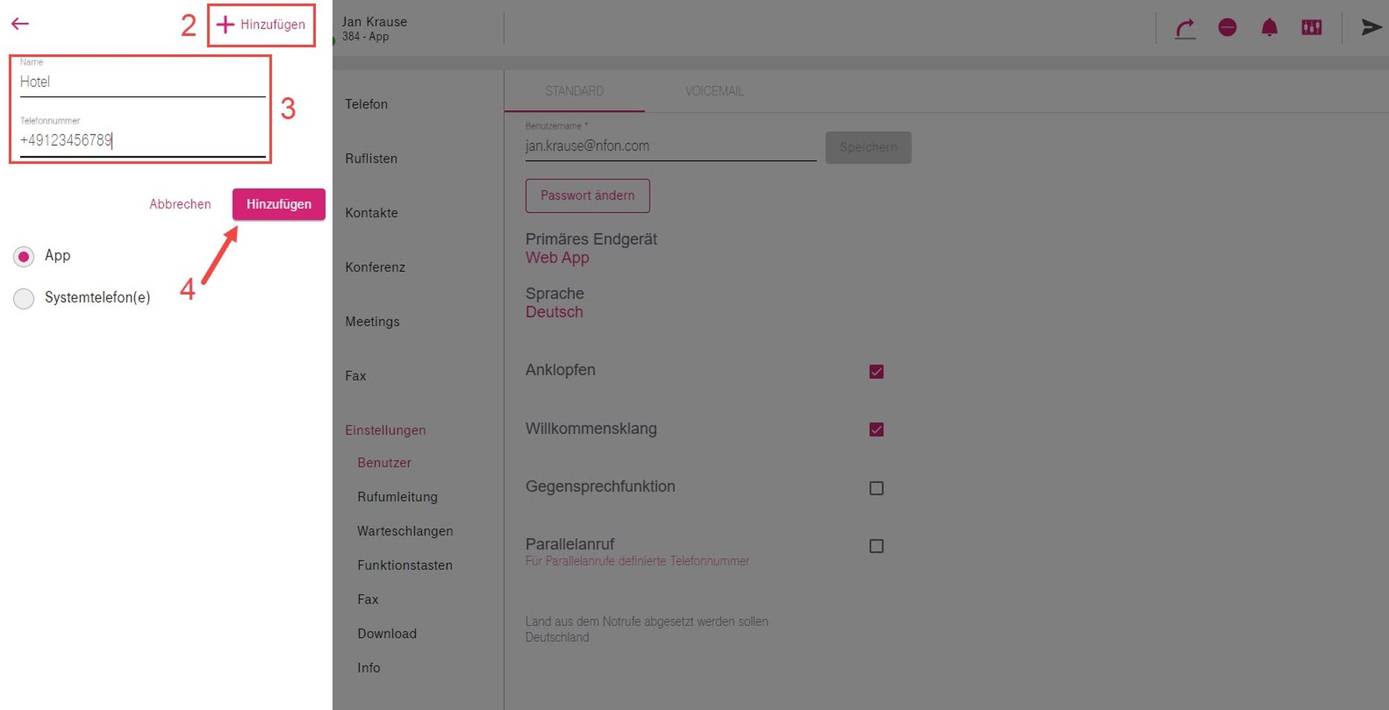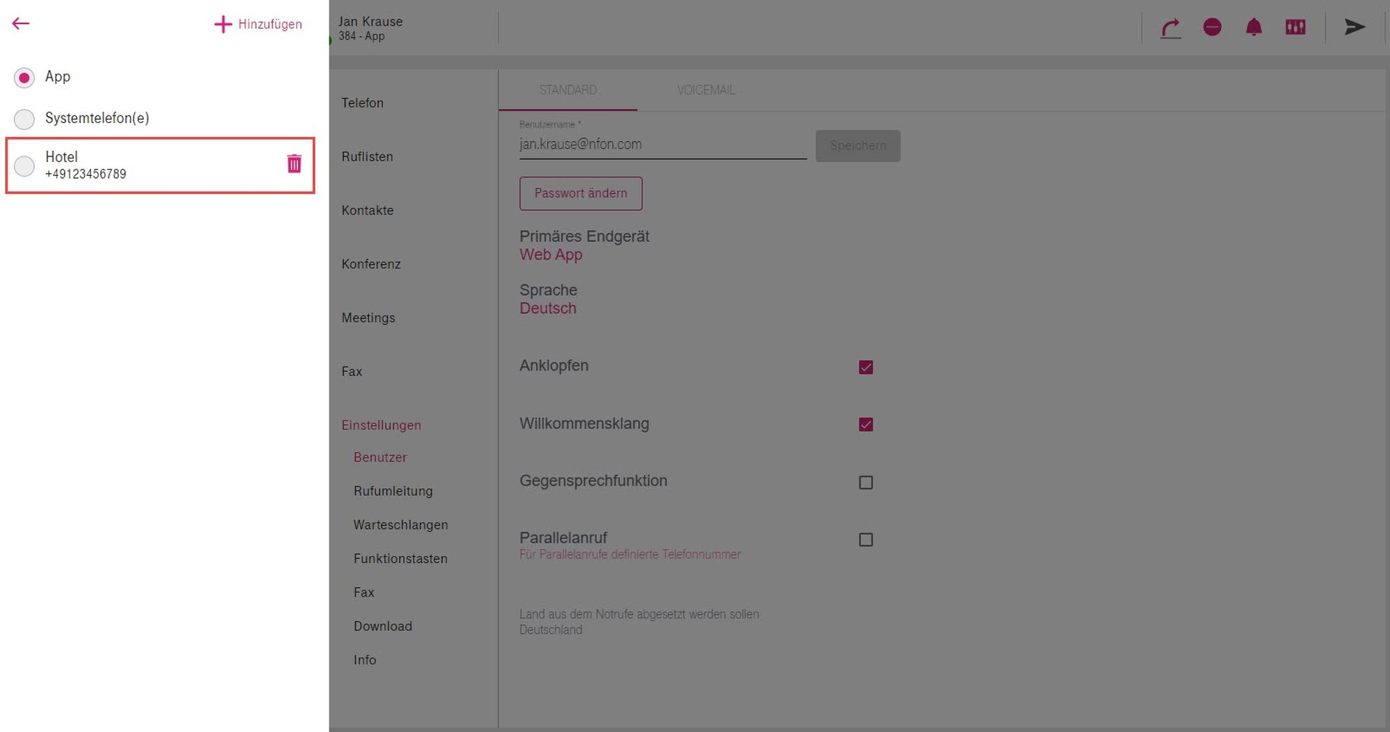 Die Nebenstellennummer aus dem Admin Portal muss mit dem Nutzer in der User Management Application verbunden werden.