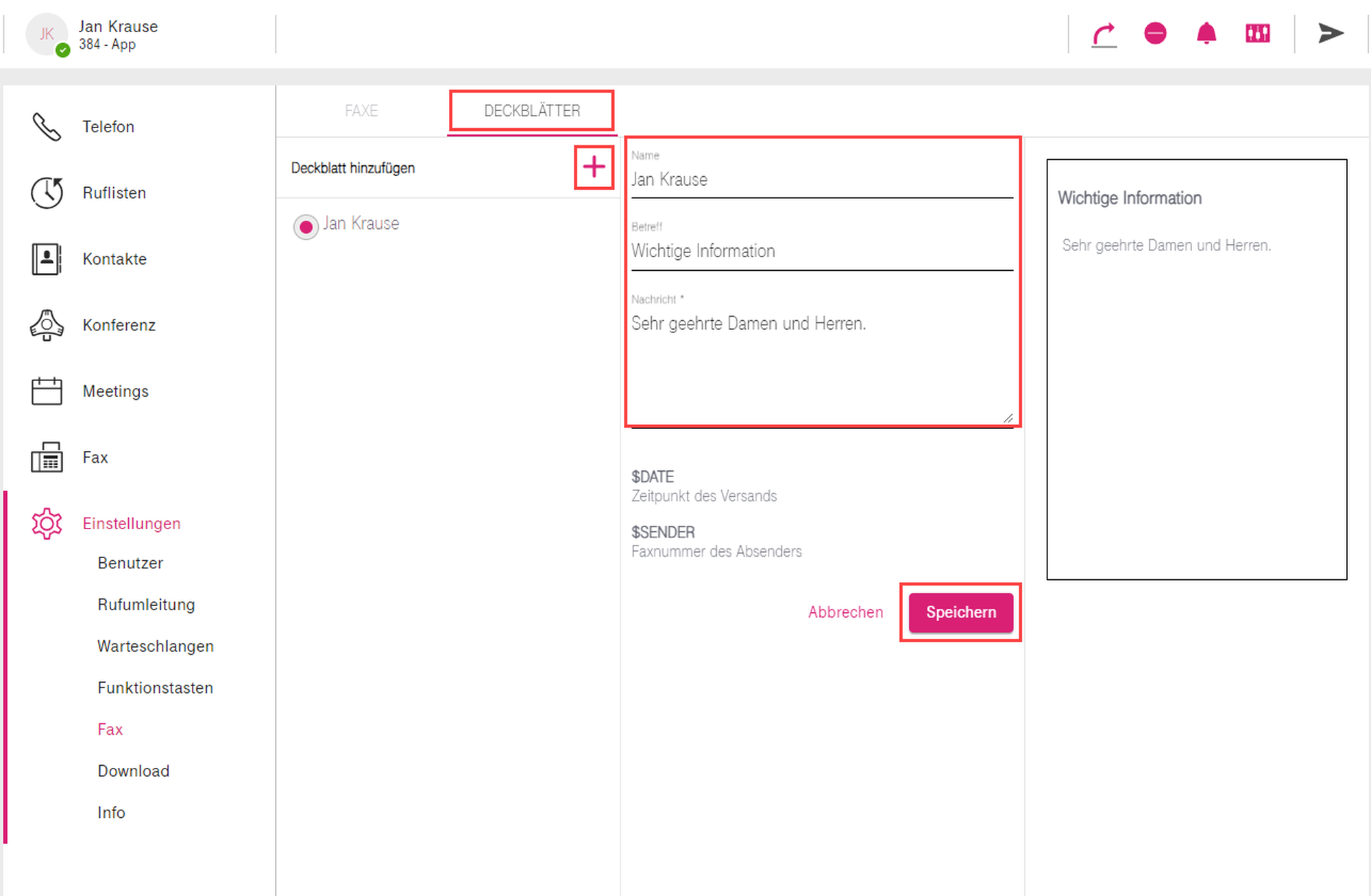 Sobald der Nutzer im Admin Portal angelegt ist und über eine Nebenstellennummer verfügt, kann der Nutzer in der User Management Application angelegt werden.