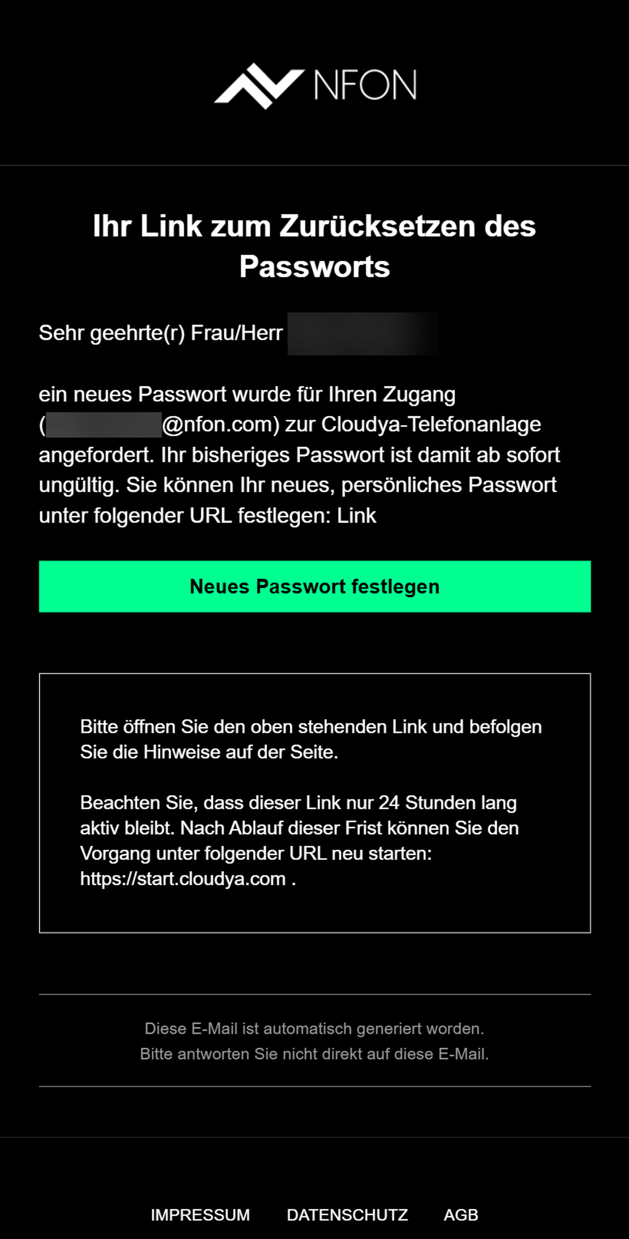 4. Klicken Sie in der E-Mail auf den Link zum Zurücksetzen des Passworts.