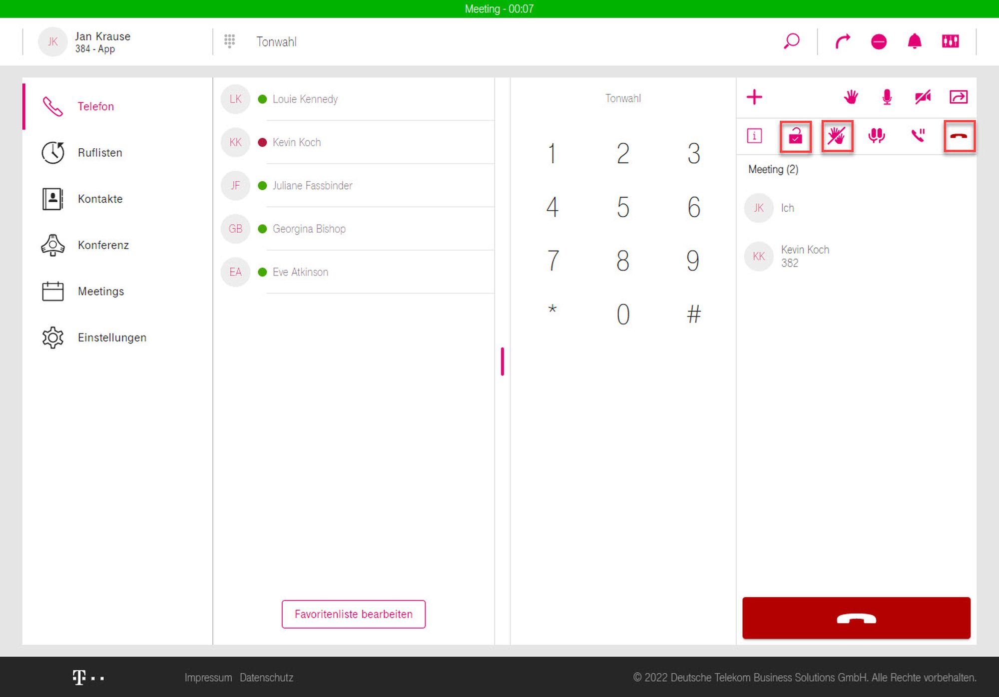 Als Gastgeber einer Konferenz können Sie zusätzlich zu den Teilnehmerfunktionen: