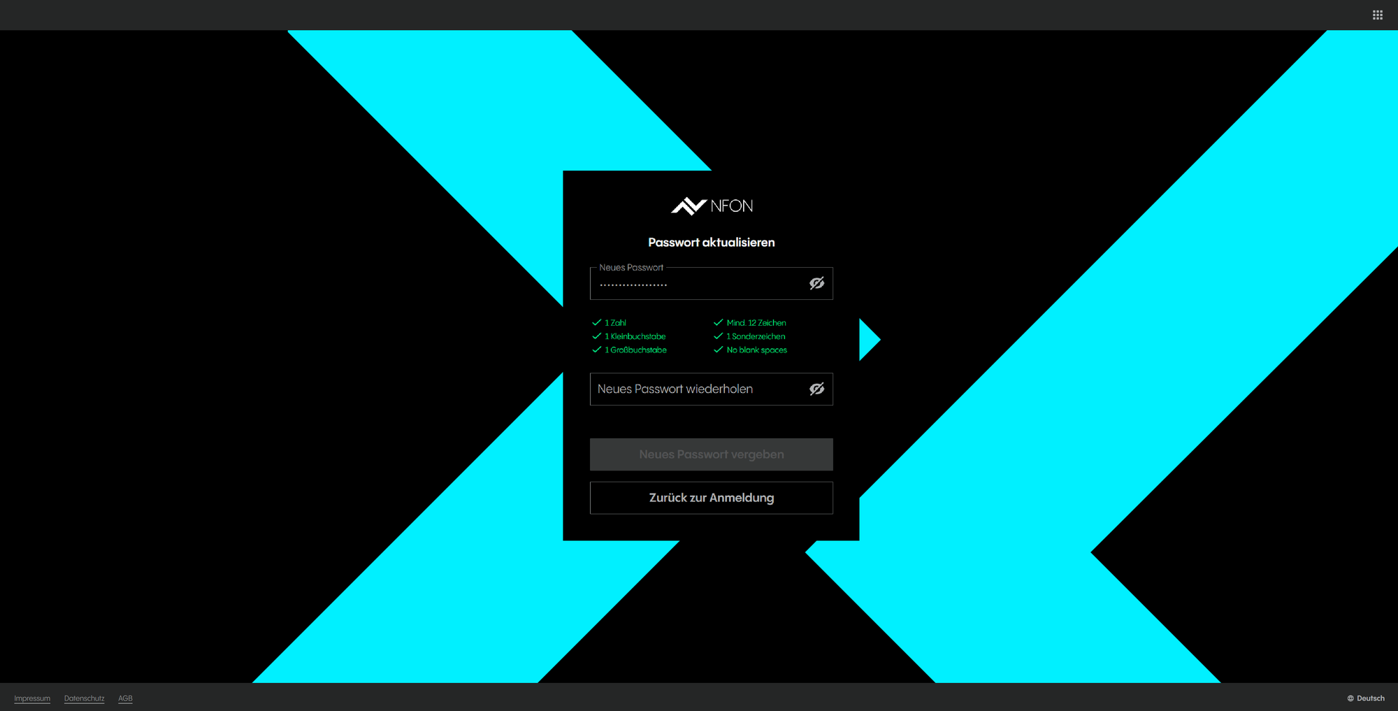 5. Geben Sie ein neues Passwort ein, das den aufgeführten Passwortanforderungen entspricht.