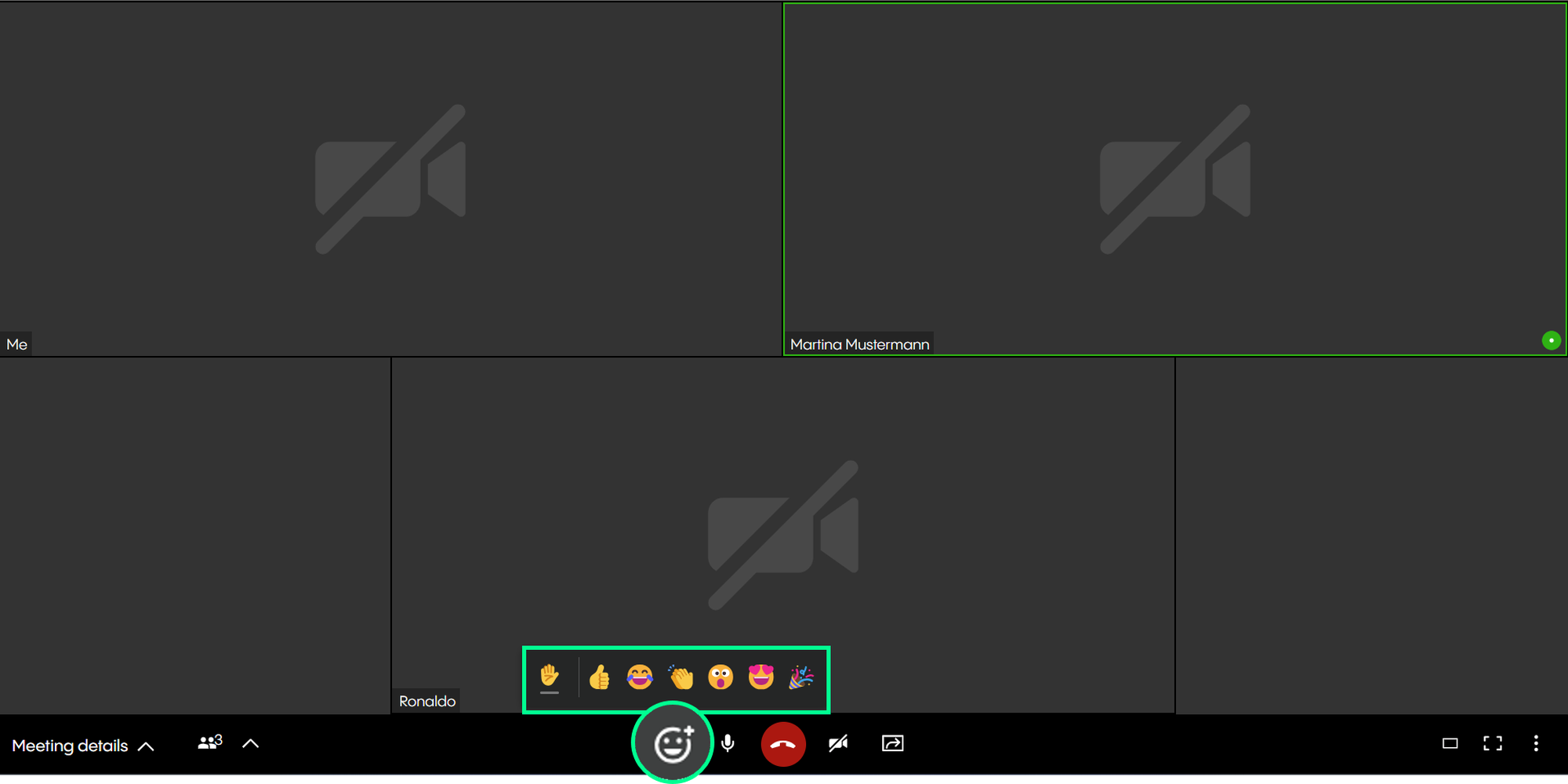 Als Teilnehmer eines Meetings können Sie die folgenden visuellen Reaktionen verwenden: