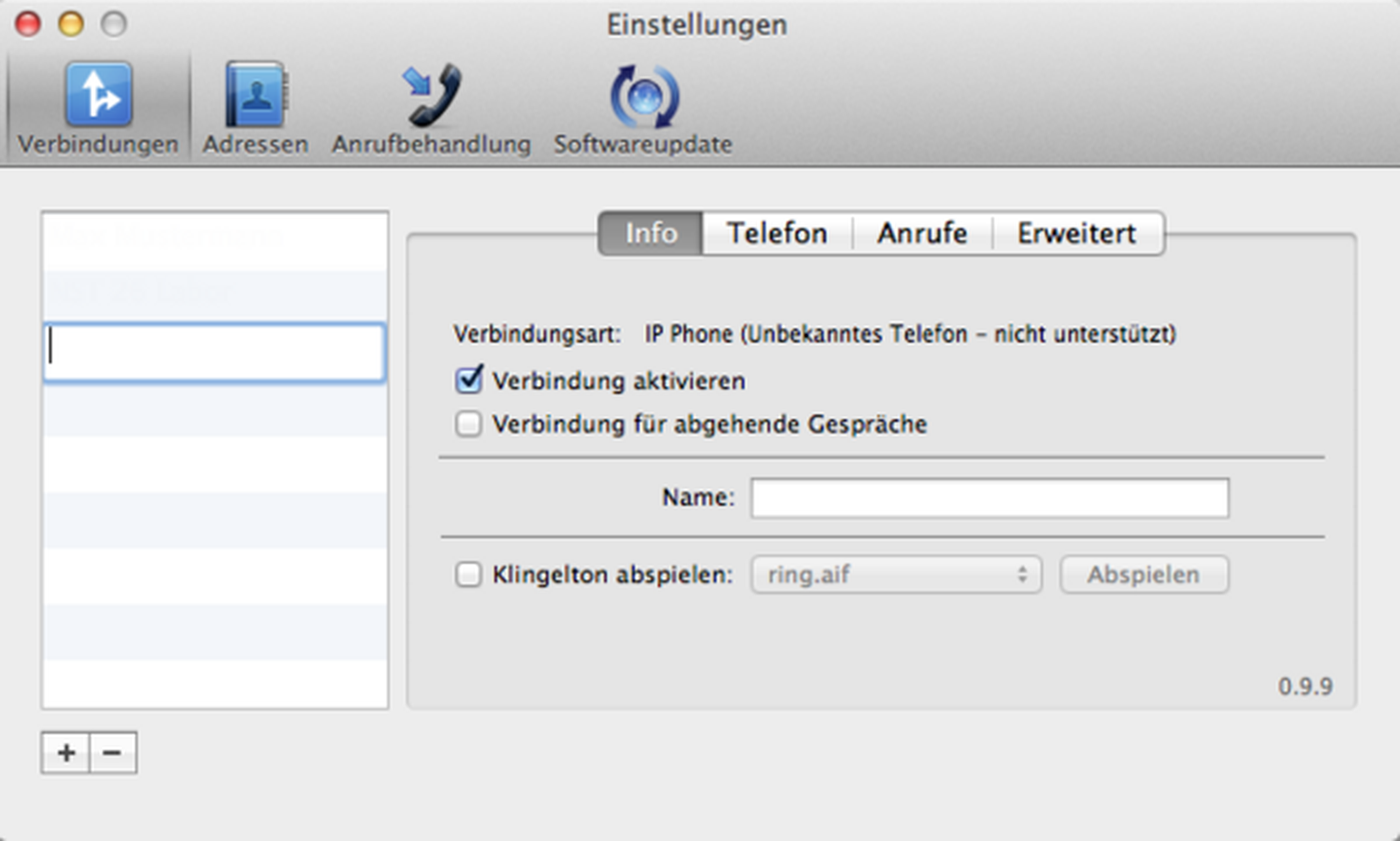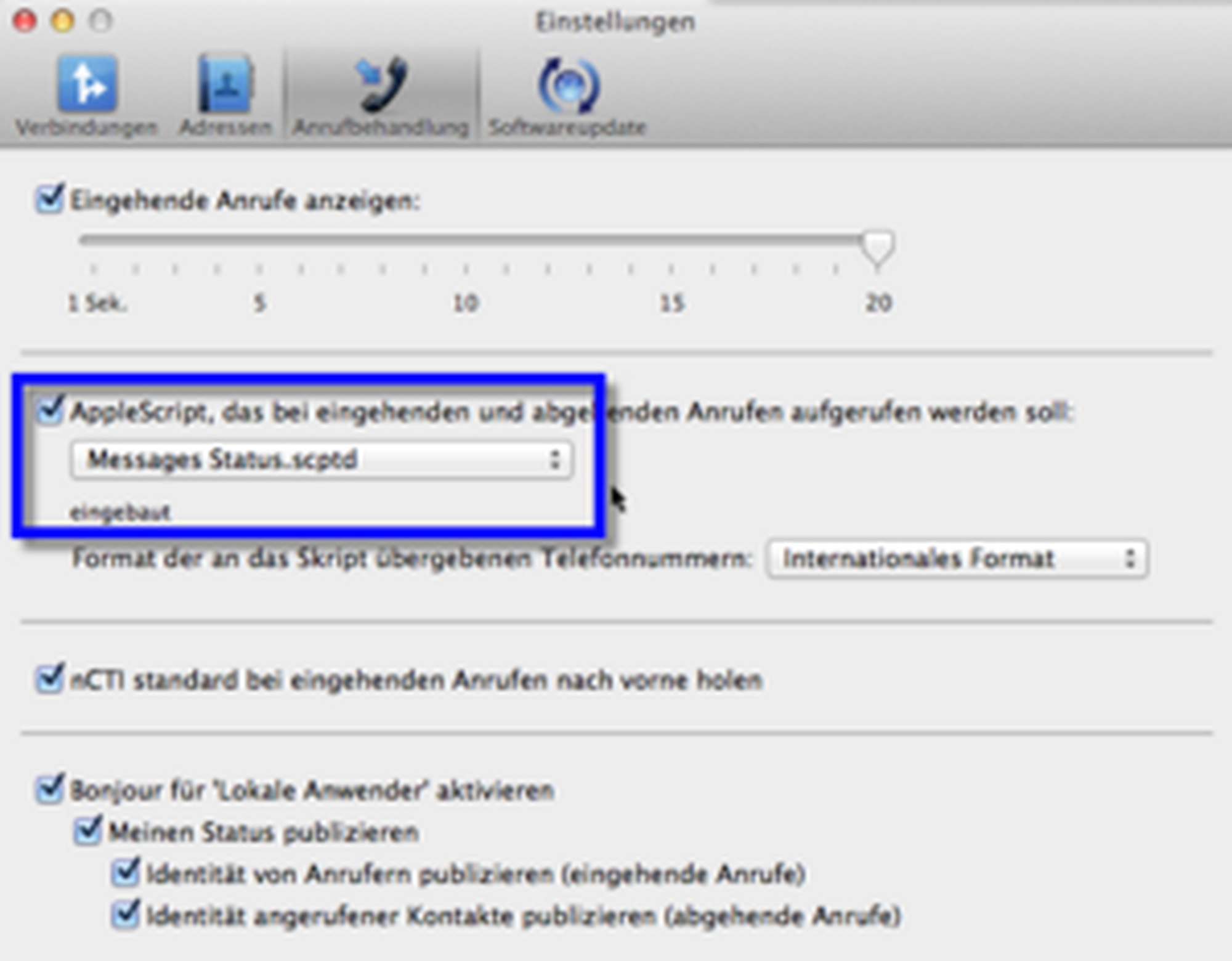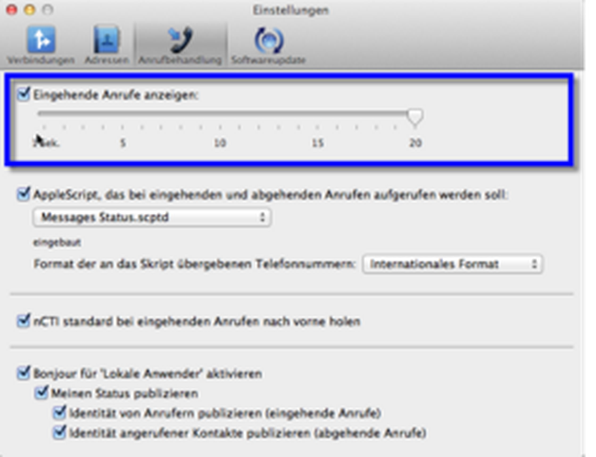 Ihr NCTI standard Client für Mac verfügt über zahlreiche Funktionen wie bpsw. Click-2-Dial. Außerdem ist mithilfe einer intelligenten Wahlwiederholungsliste auch das direkte Anwählen von Kontakten verschiedener Adressbücher möglich. Damit zeigt Ihnen der NCTI standard Client für Mac sogar Name, Firma und Profilbild eines Anrufers mittels Screenpopup an. Ergänzend dazu ist eine weitere Besonderheit Ihres Clients die Anzeige des Presence-Status mithilfe der Bonjour-Funktion. Somit haben Sie jederzeit einen Überblick der Rufaktivitäten aller Anwender im gleichen Netz.