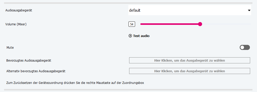Alternativ bevorzugtes Audioausgabegerät | Wählen Sie ein alternatives Audioausgabegerät aus, falls das bevorzugte Gerät nicht verfügbar ist. (Beispielsweise das Mikrofon des Notebooks) |
