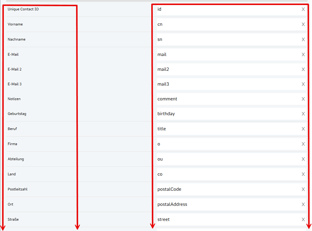 Spalte 2: CSV-Attribut Geben Sie ein benutzerdefiniertes CSV-Attribut in die bearbeitbaren Felder ein.
