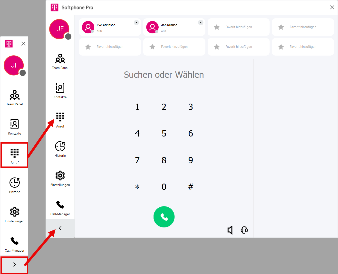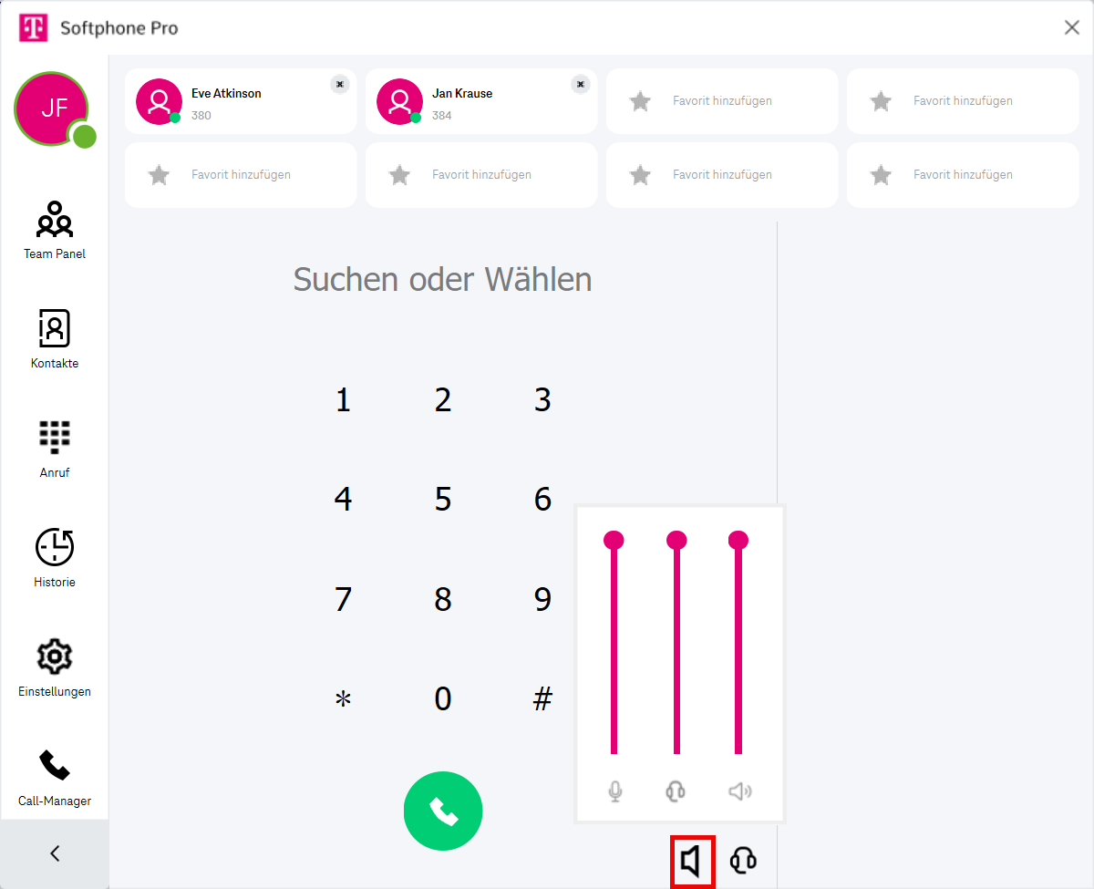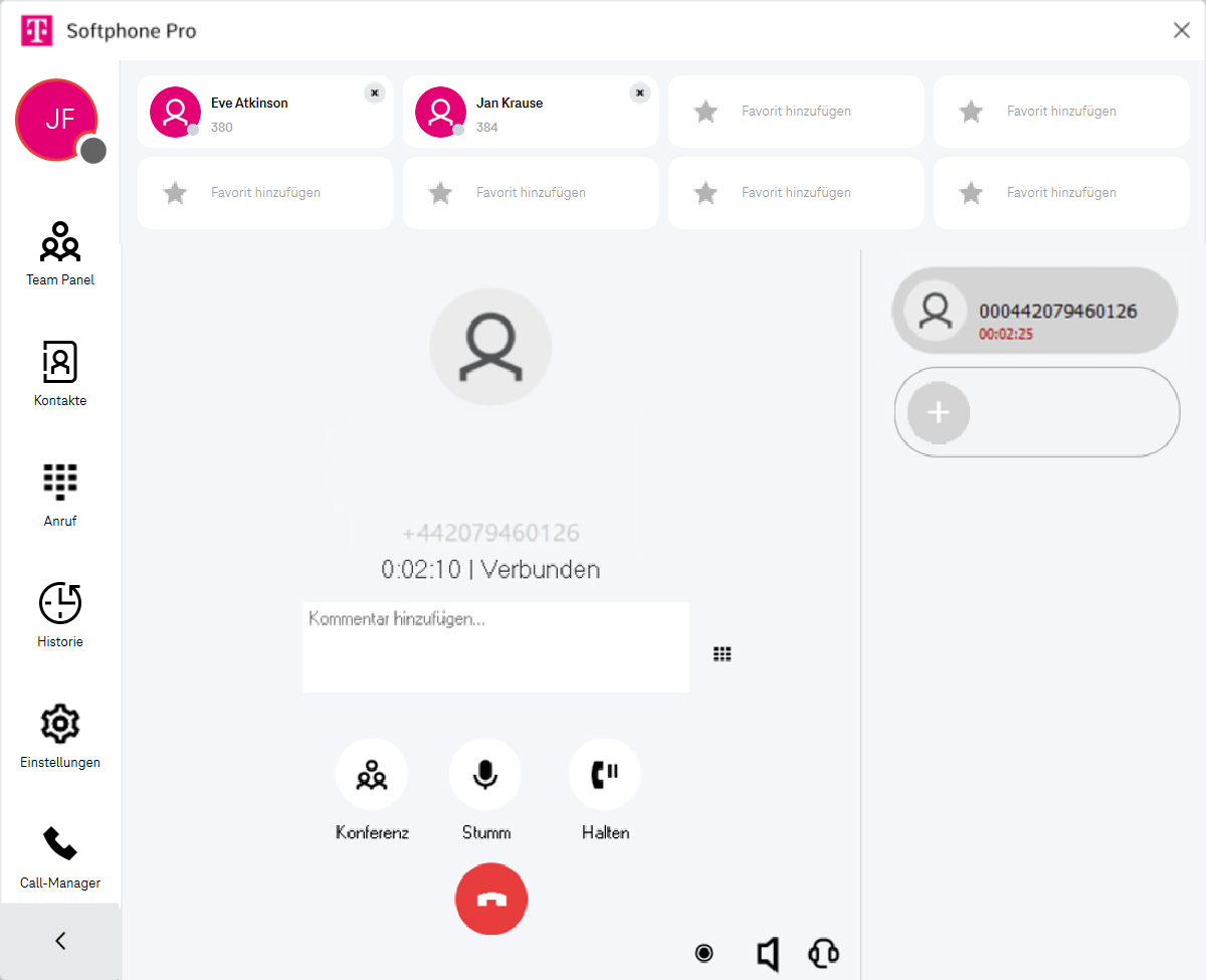 Hinweis: Das Ändern der Fenstergröße startet den Softphone Pro Client neu.Hilfe öffnen (Das Softphone Pro-Handbuch wird im Webbrowser geöffnet.)