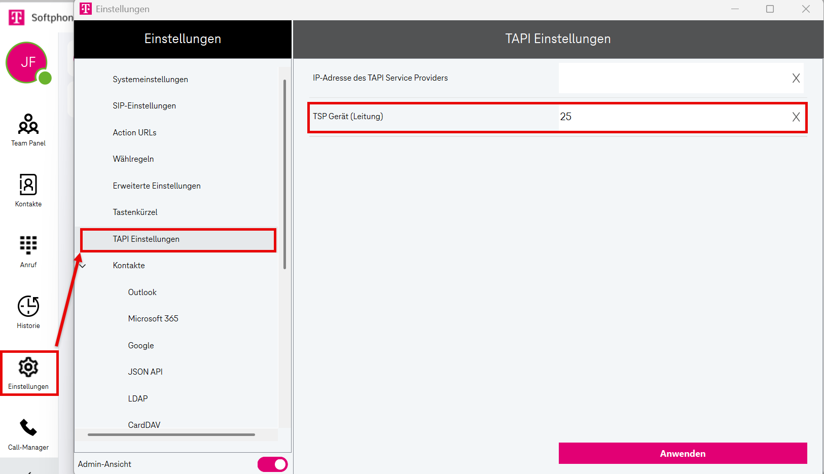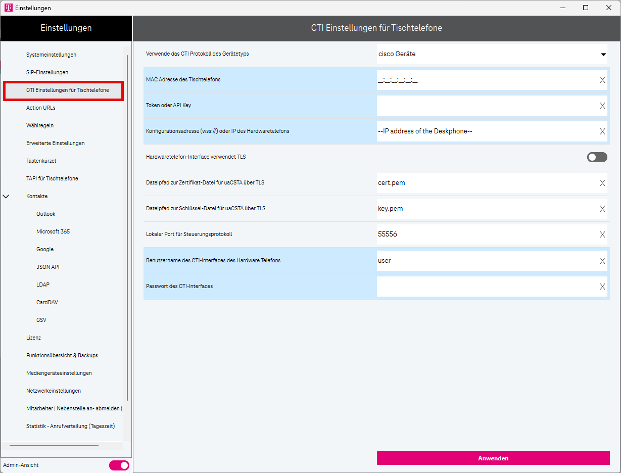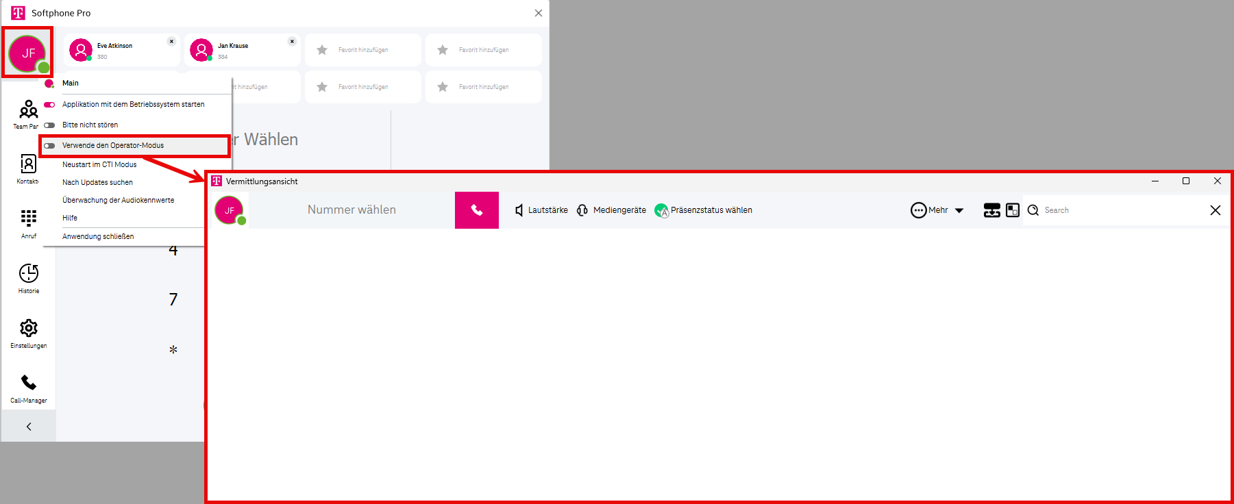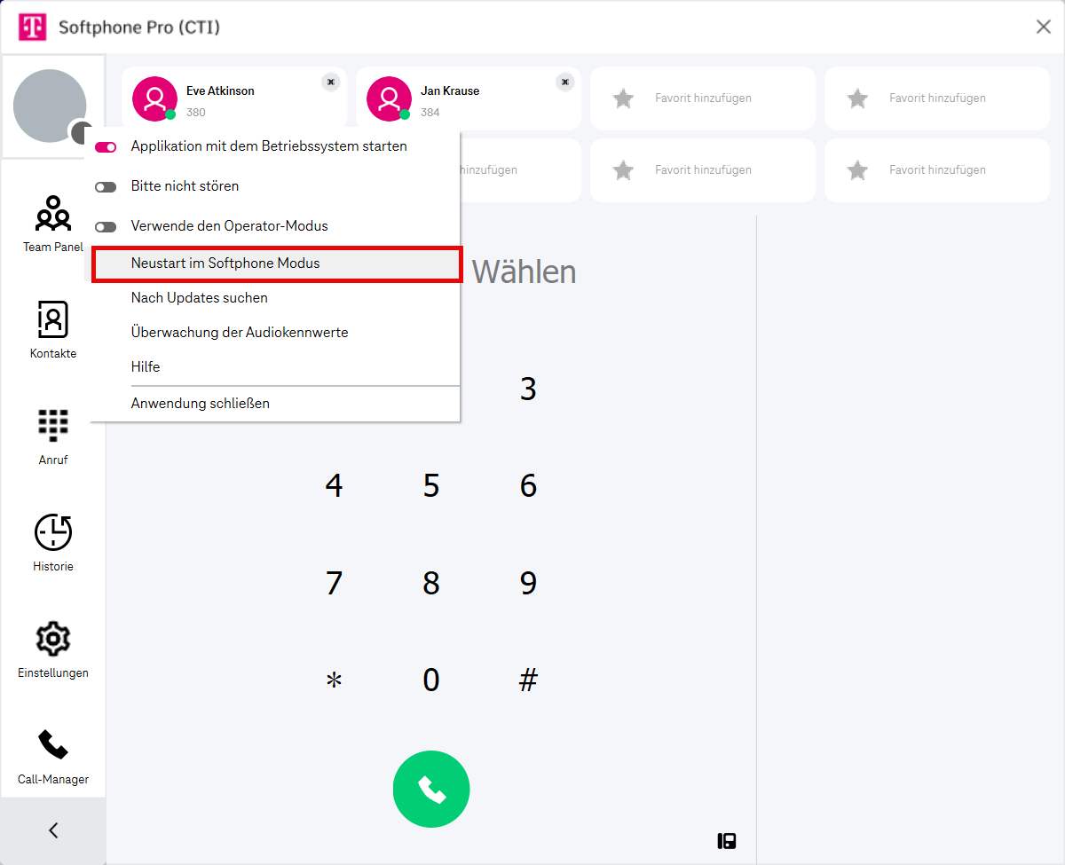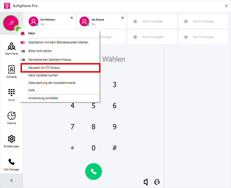 Im CTI-Modus neu starten (weitere Informationen finden Sie unter CTI-Modus / Softphone-Modus.)