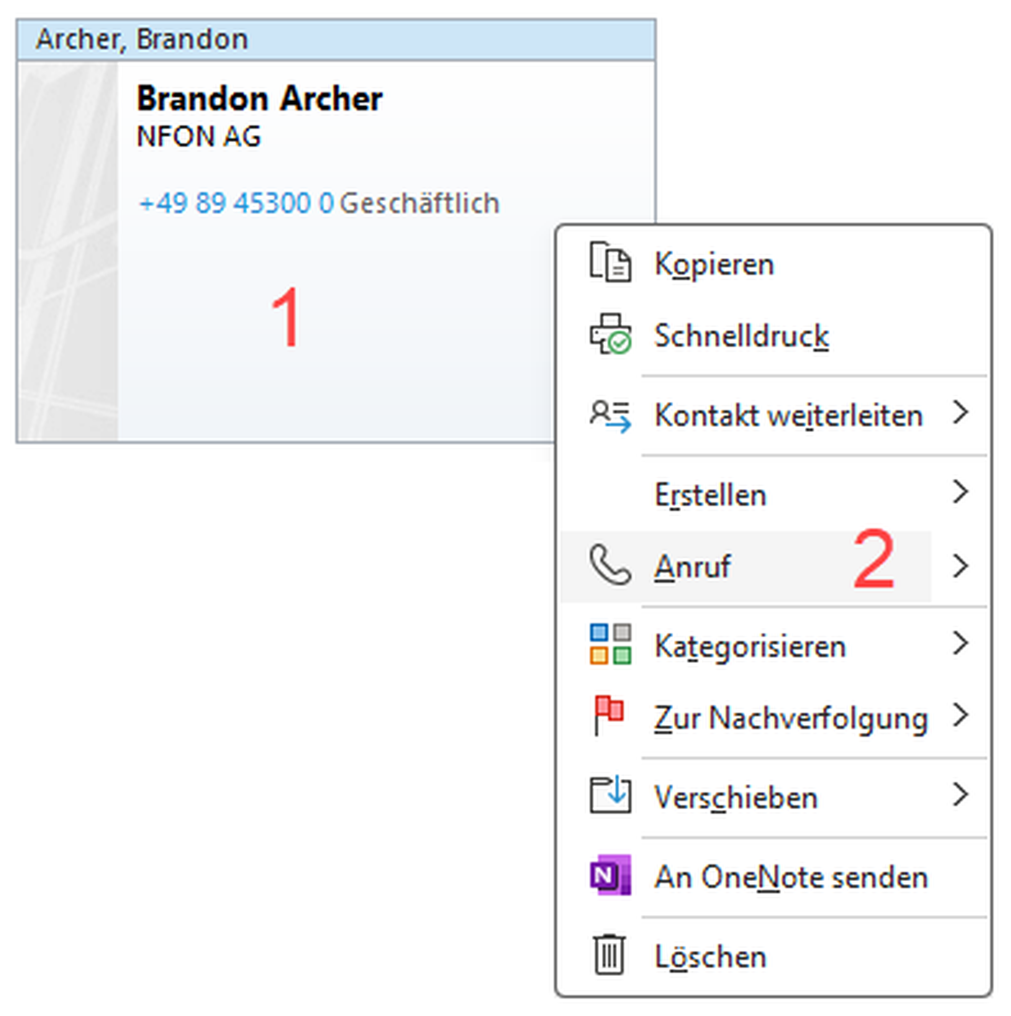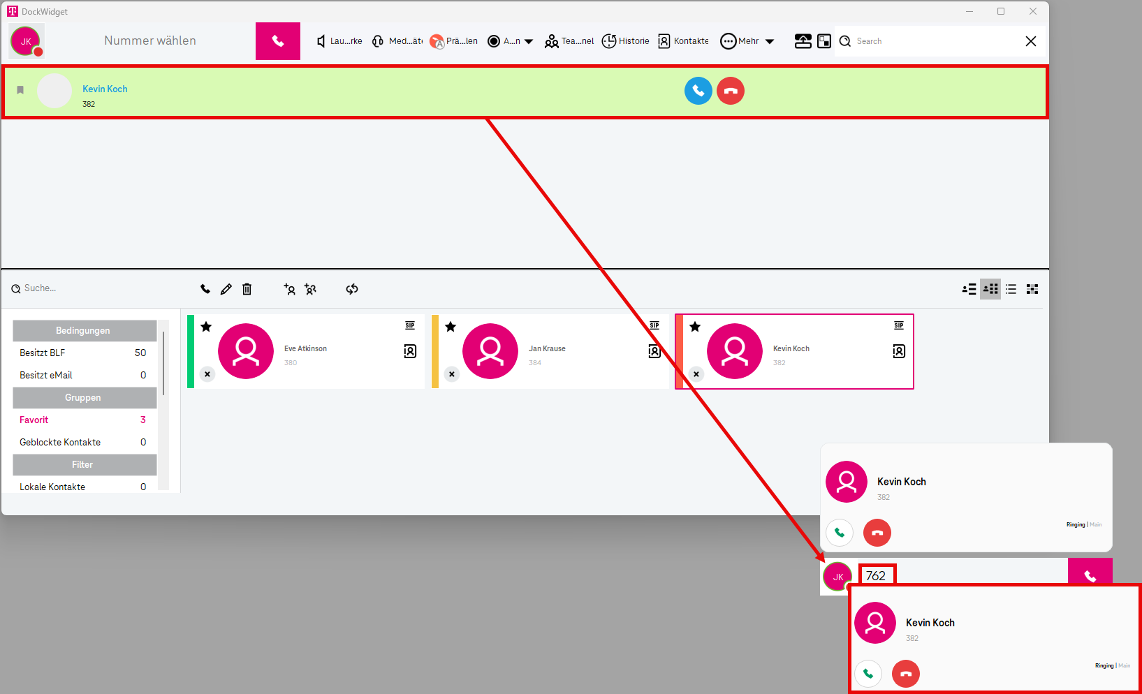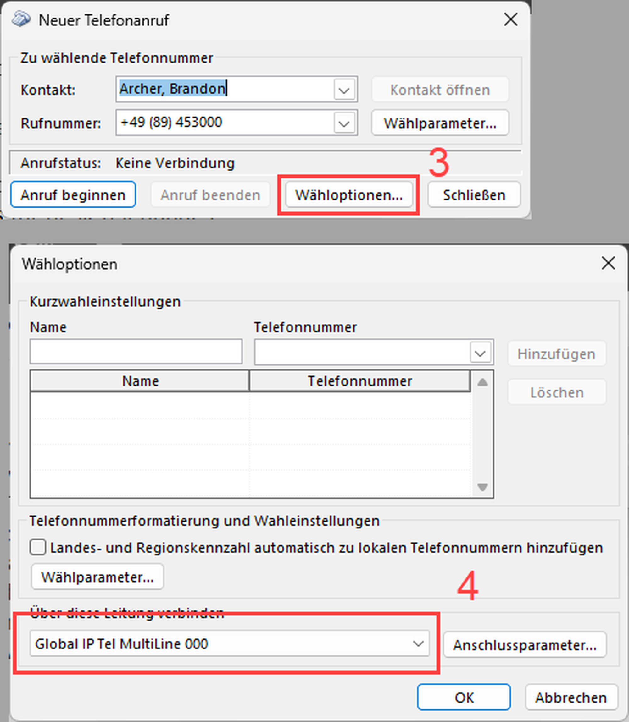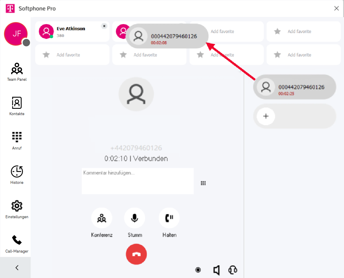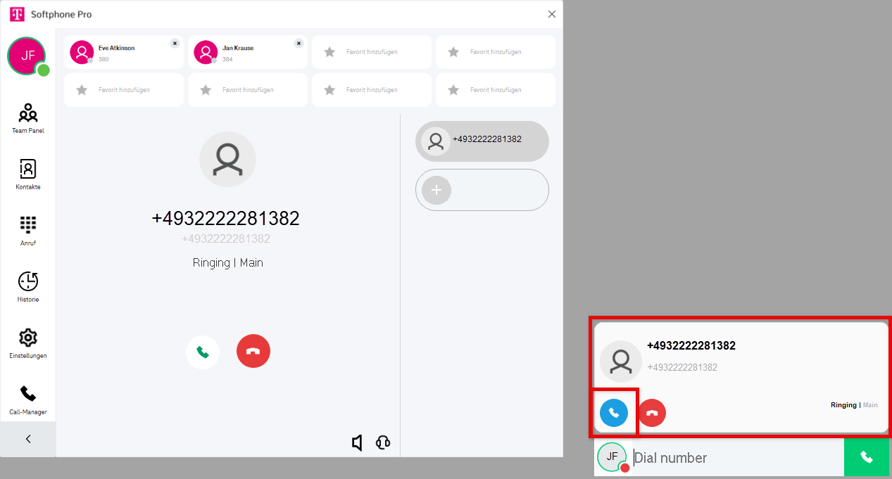 Wählen Sie die Nummer, indem Sie auf das Hörersymbol klicken oder die Eingabetaste drücken. Alternativ können Sie auch den Anrufmanager verwenden, um eine Nummer zu wählen (siehe unten).