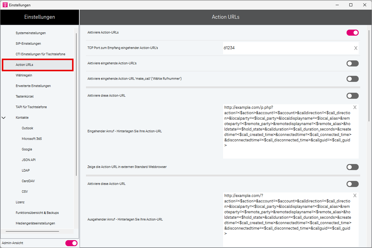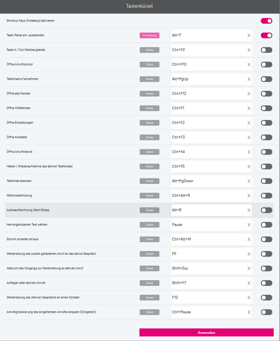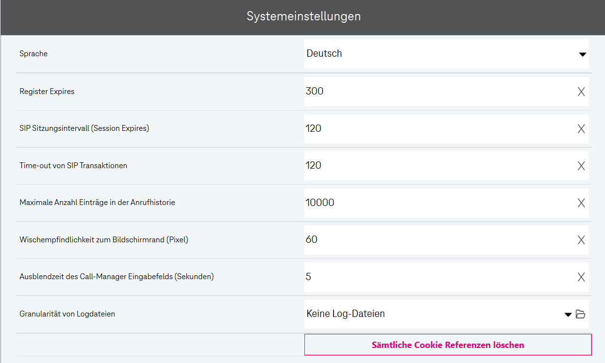 Öffnet die Einstellungen.Call-Manager