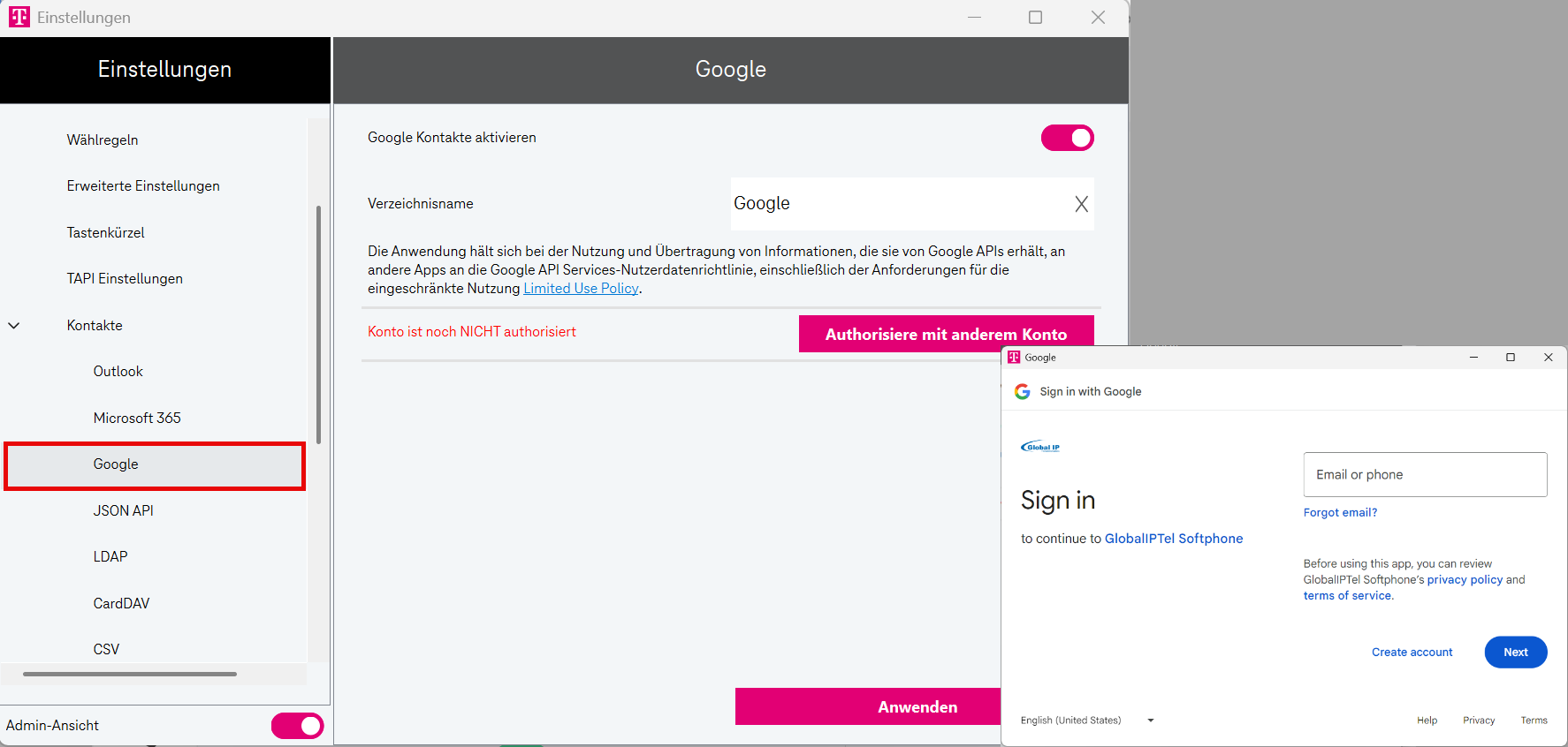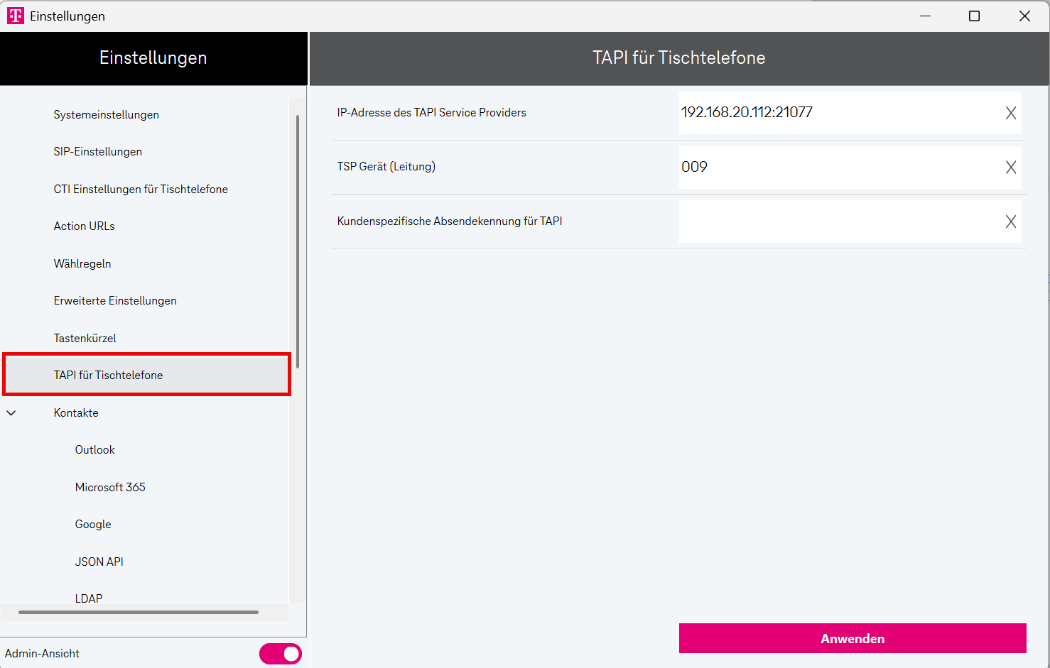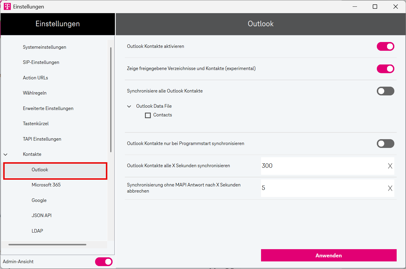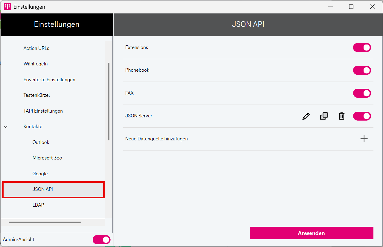 Aktivieren Sie den Umschalter Admin-Ansicht.