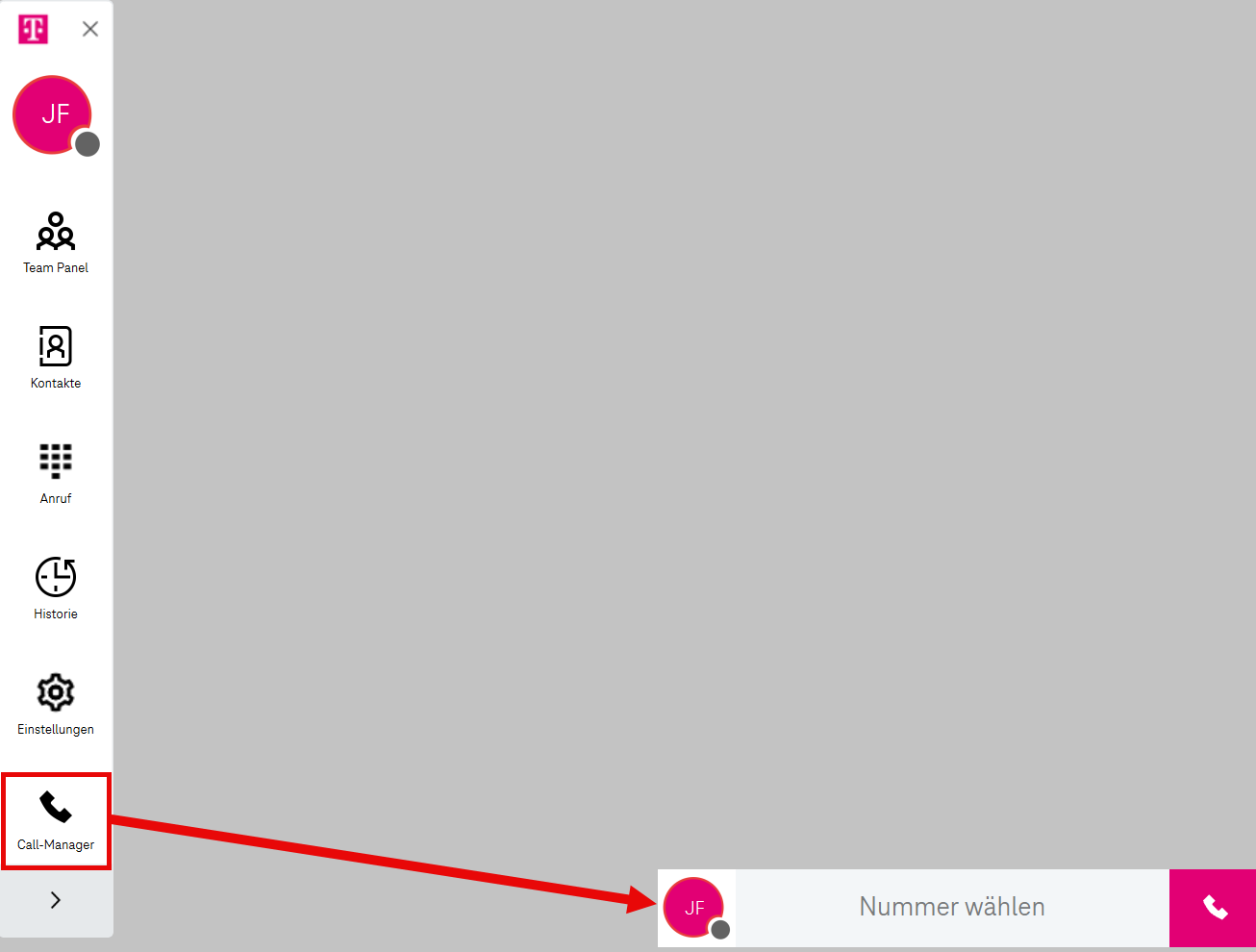 Der Call-Manager ist eine Eingabeleiste zum Wählen von Telefonnummern. Er erscheint in der unteren rechten Ecke Ihres Bildschirms und kann per Drag & Drop an eine beliebige Stelle auf dem Bildschirm verschoben werden.