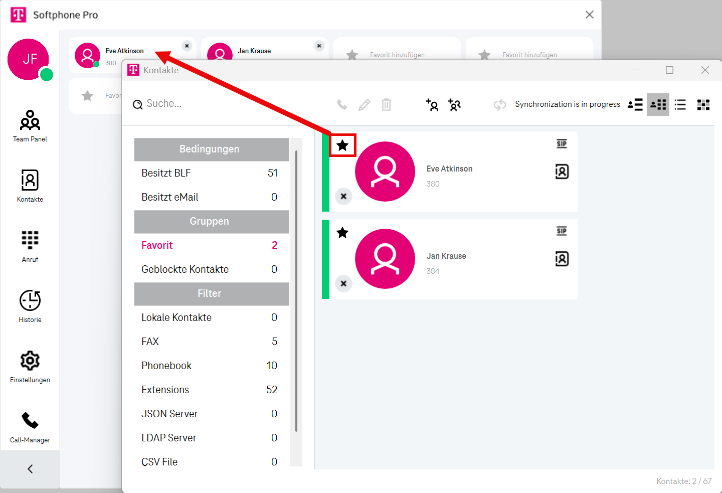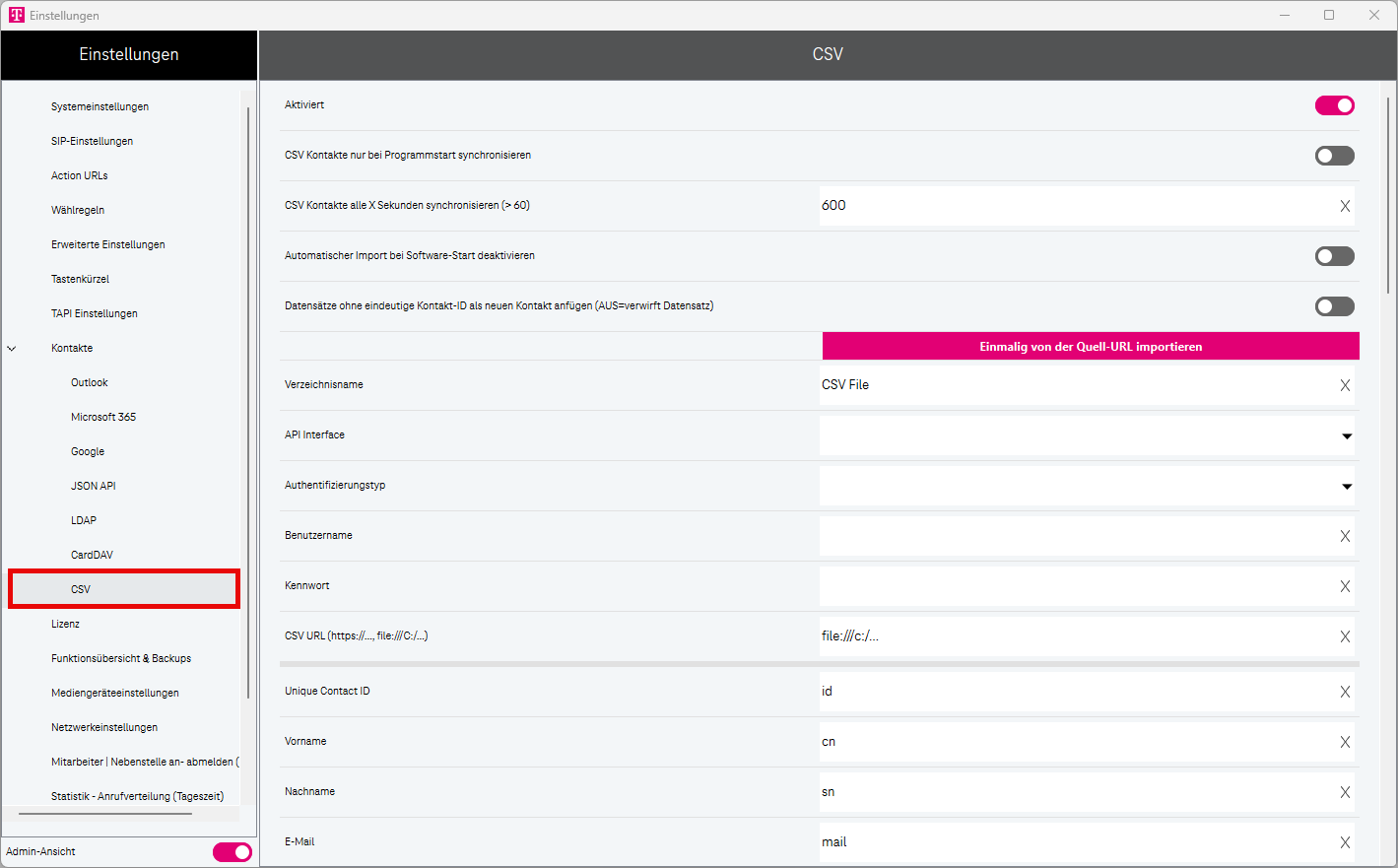 Ihre Kontakte können über eine CSV-Datei mit Softphone Pro synchronisiert werden.