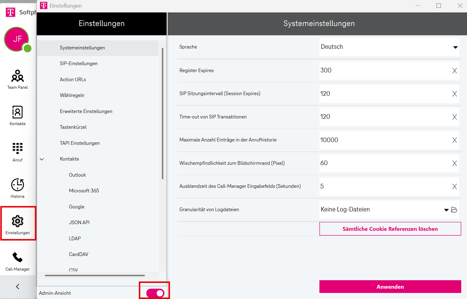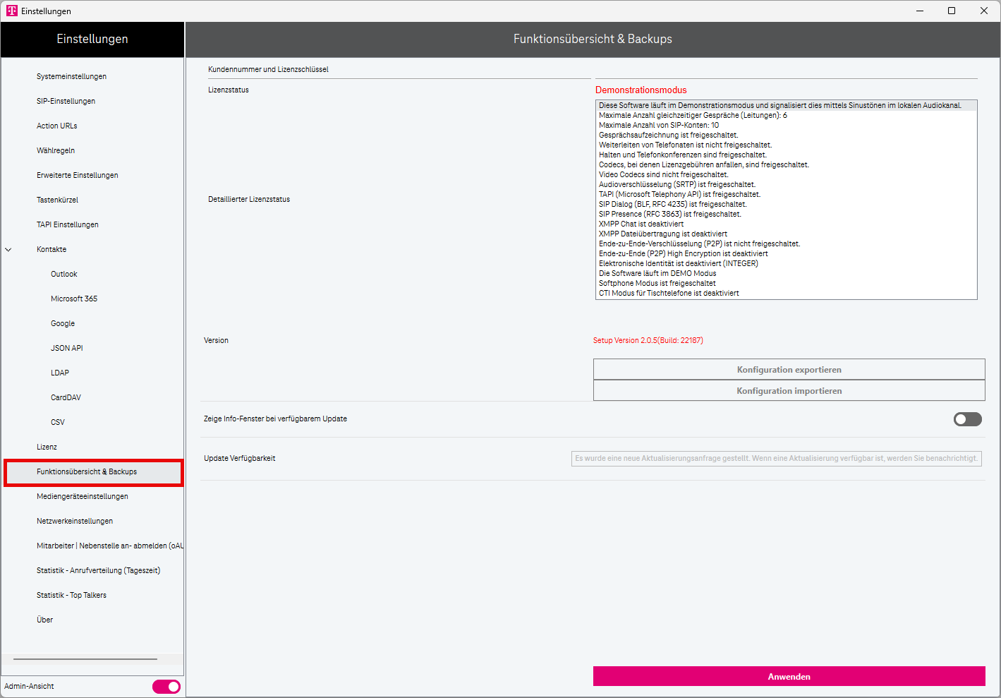 Die aktuelle Version von Softphone Pro