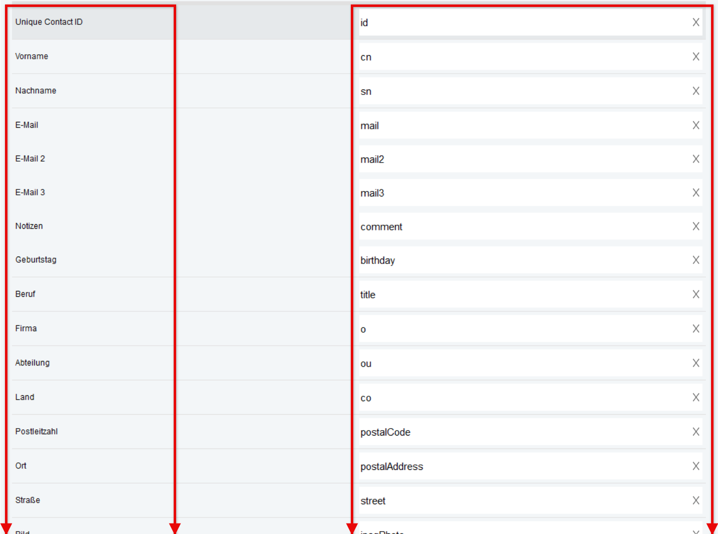 Beispiel für die Programmierung einer einfachen CSV-Struktur für ein einzelnes „Kontakt-Objekt”