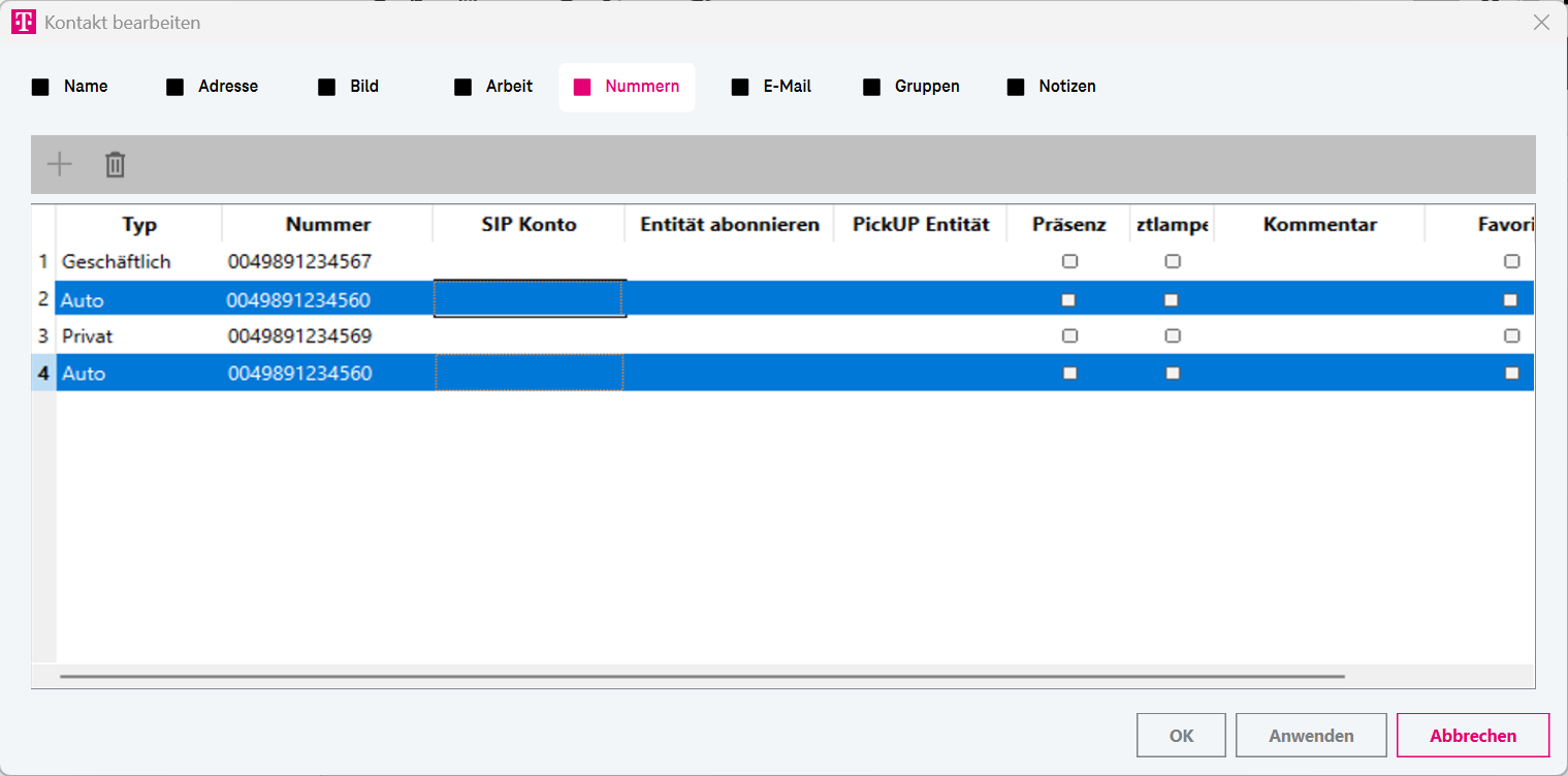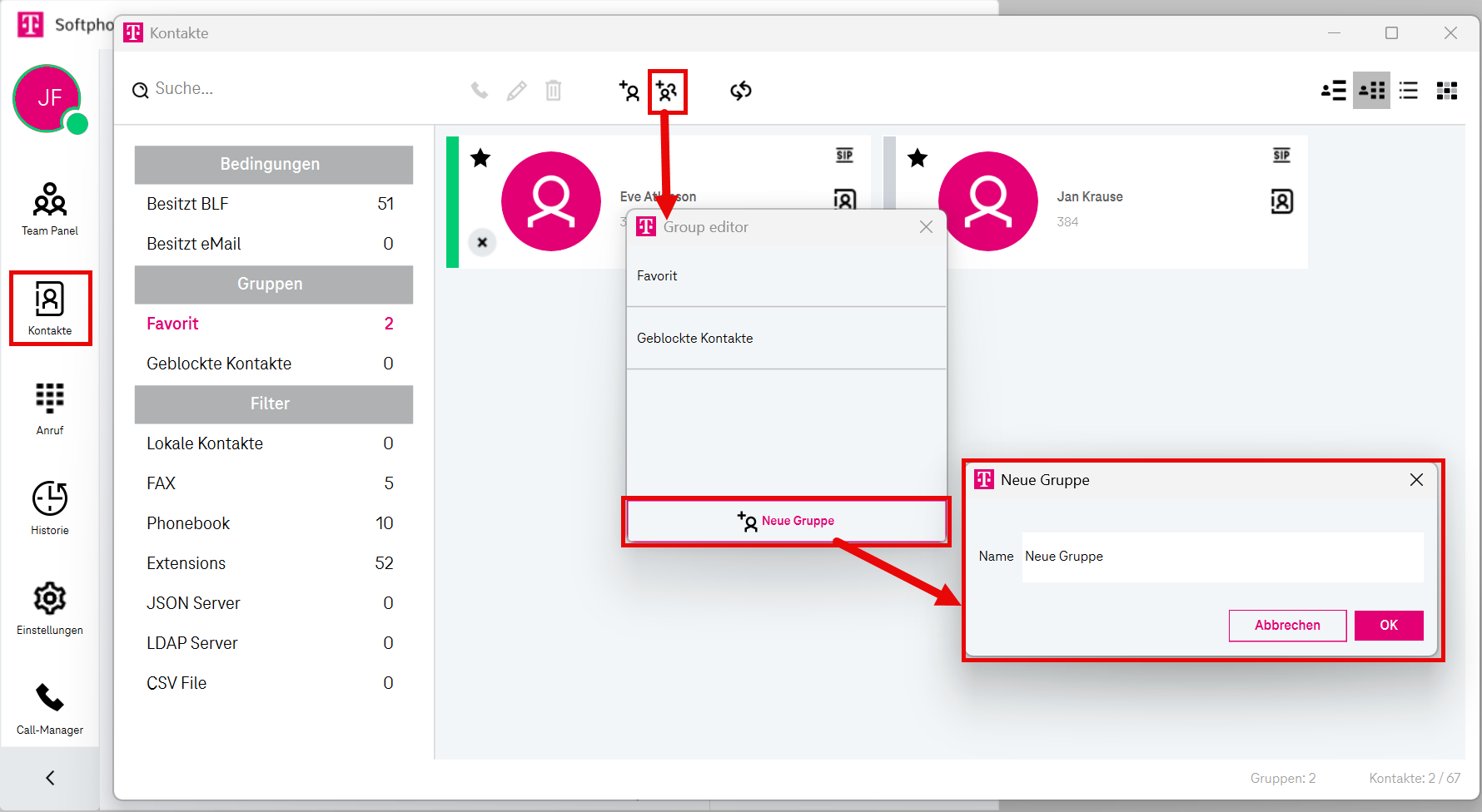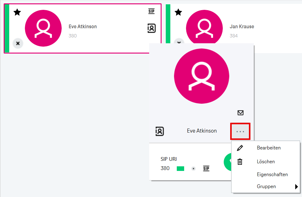 Öffnet ein separates Fenster zur Verwaltung Ihrer Kontakte.Anruf