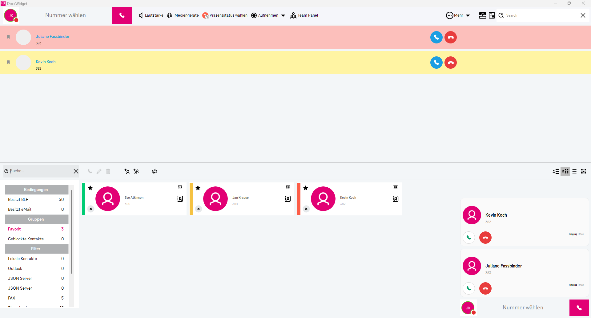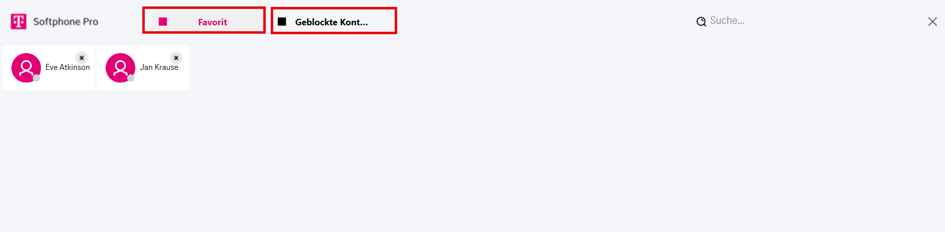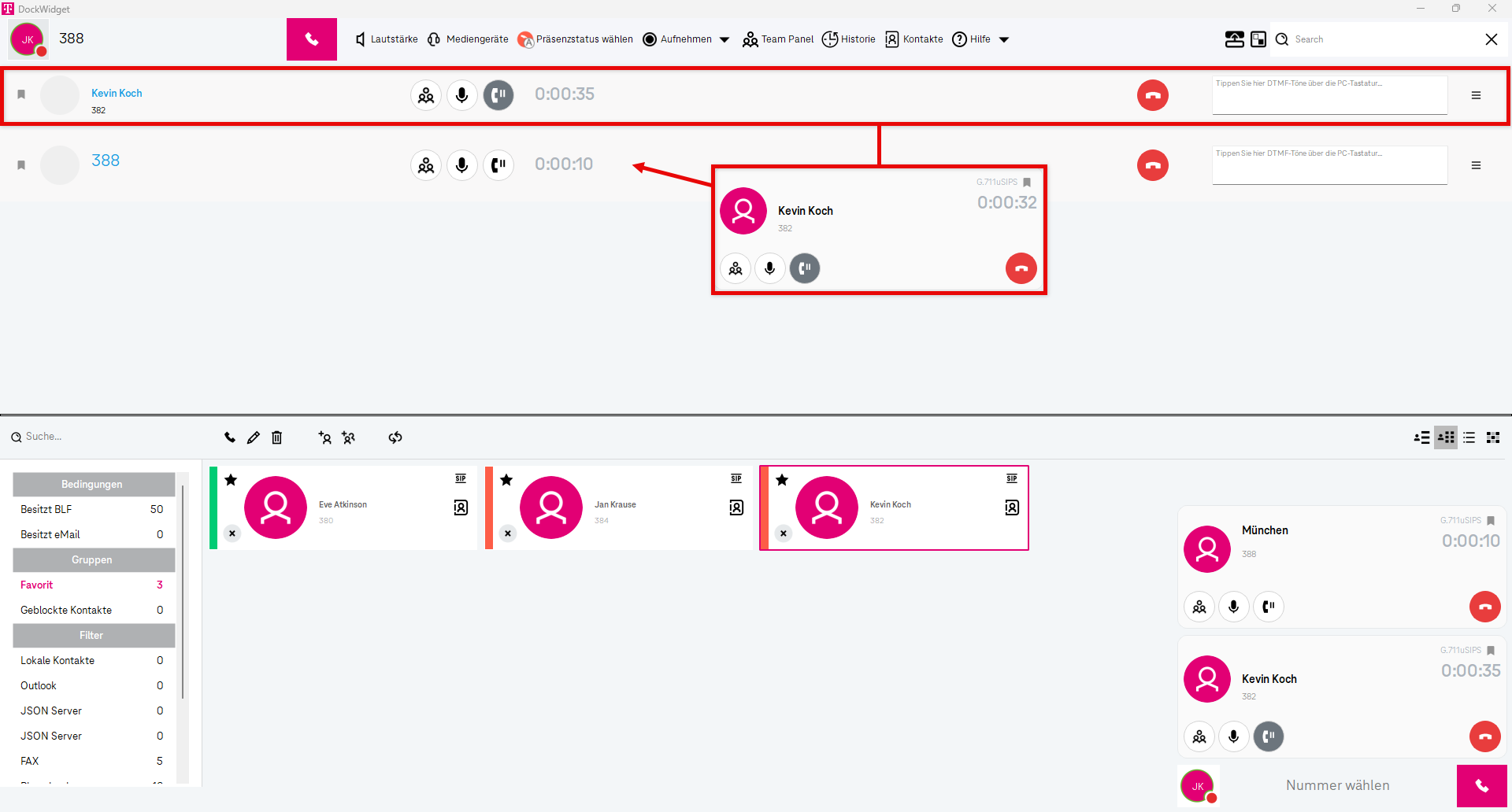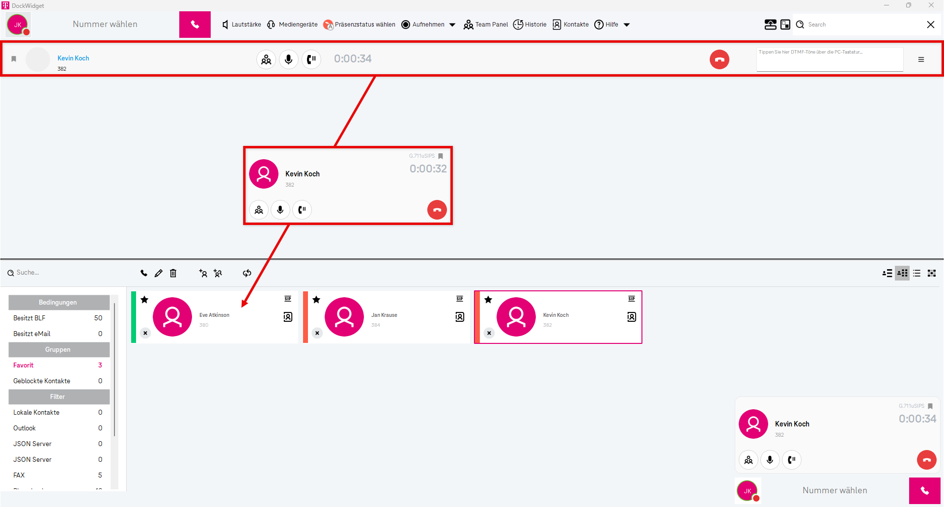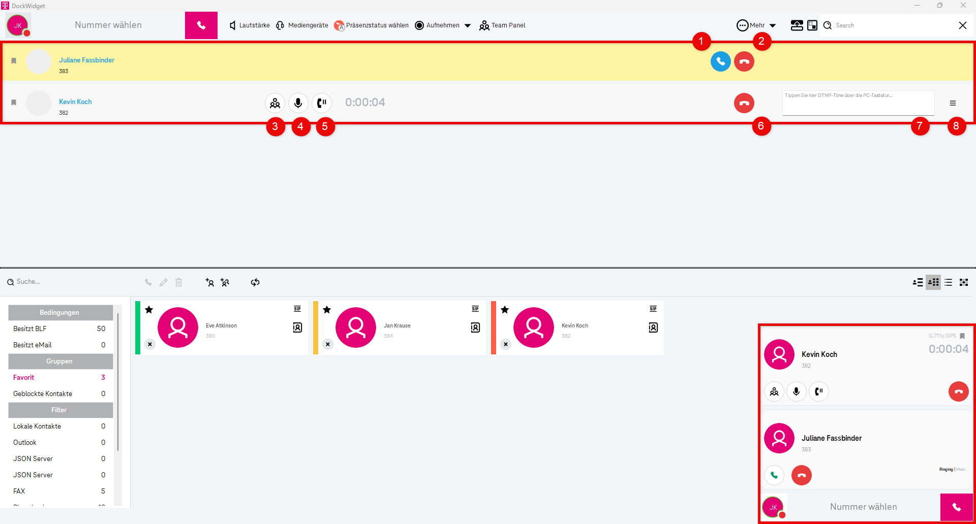 Die Nutzerinfo in der oberen linken Ecke dient als Statusanzeige und zeigt Ihnen die Verbindung zwischen Ihrer Telefonanlage und Ihrem Softphone an.