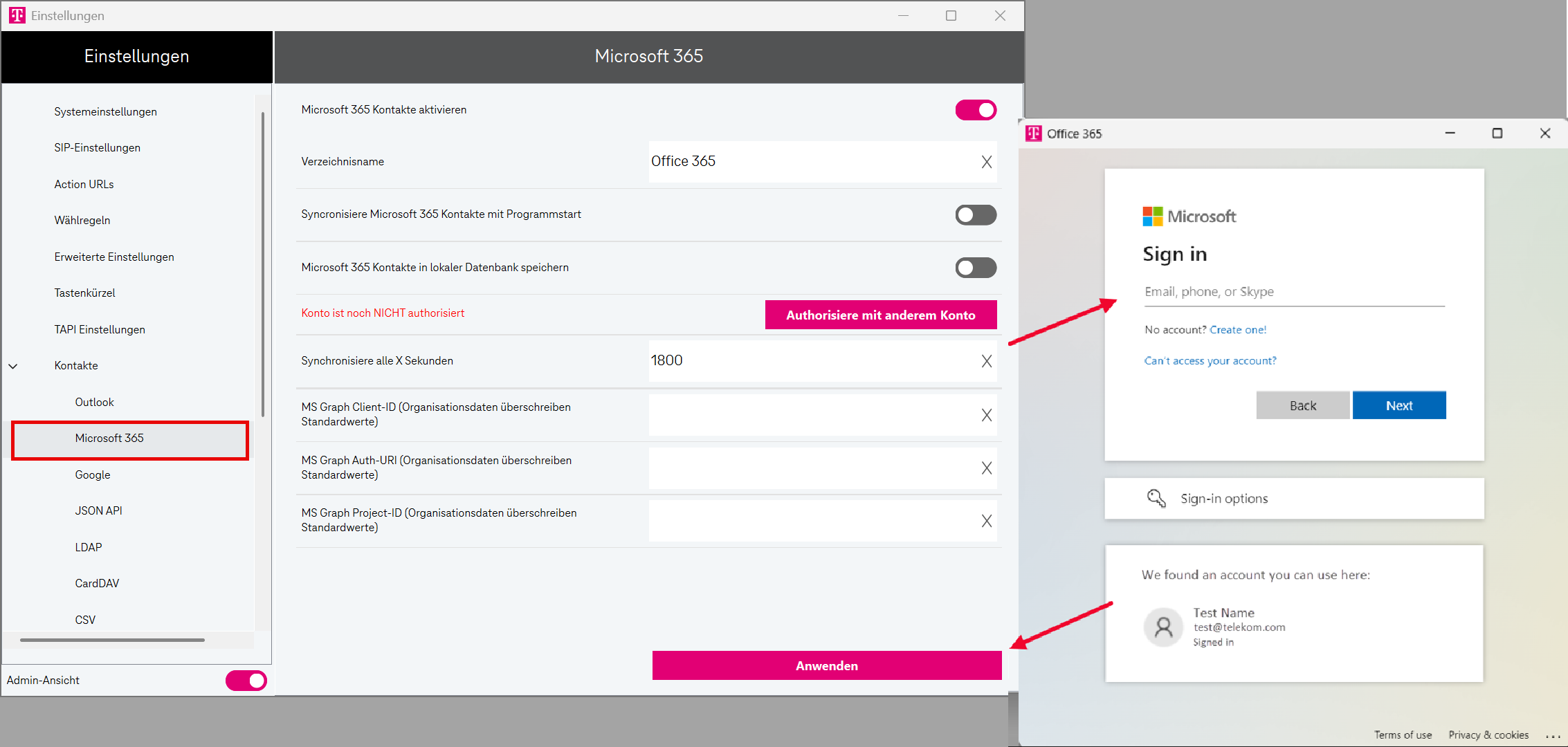 Weitere Informationen zur Anmeldung, ggf. Fehlerbehebung finden Sie unter Bei der App anmelden.