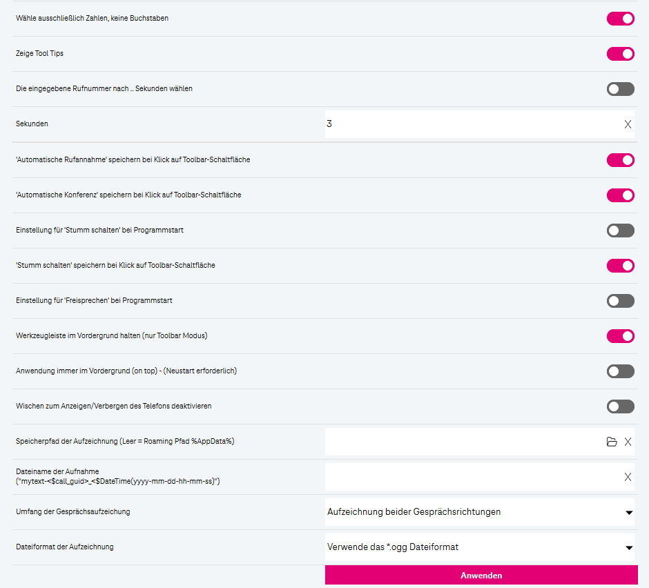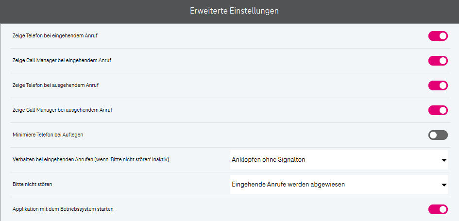 Die Anwendung mit dem Betriebssystem starten (Softphone Pro wird automatisch mit Windows gestartet.)