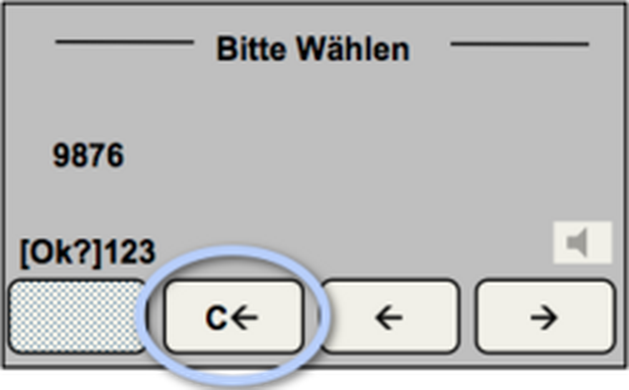 .Wenn Sie sich beim Wählen der Nummer verwählt haben, können Sie mit „C←“ (Softkey Funktion) die Eingabe korrigieren.Alternativ löschen Sie die gesamte Eingabe durch Drücken der Abbruchtaste