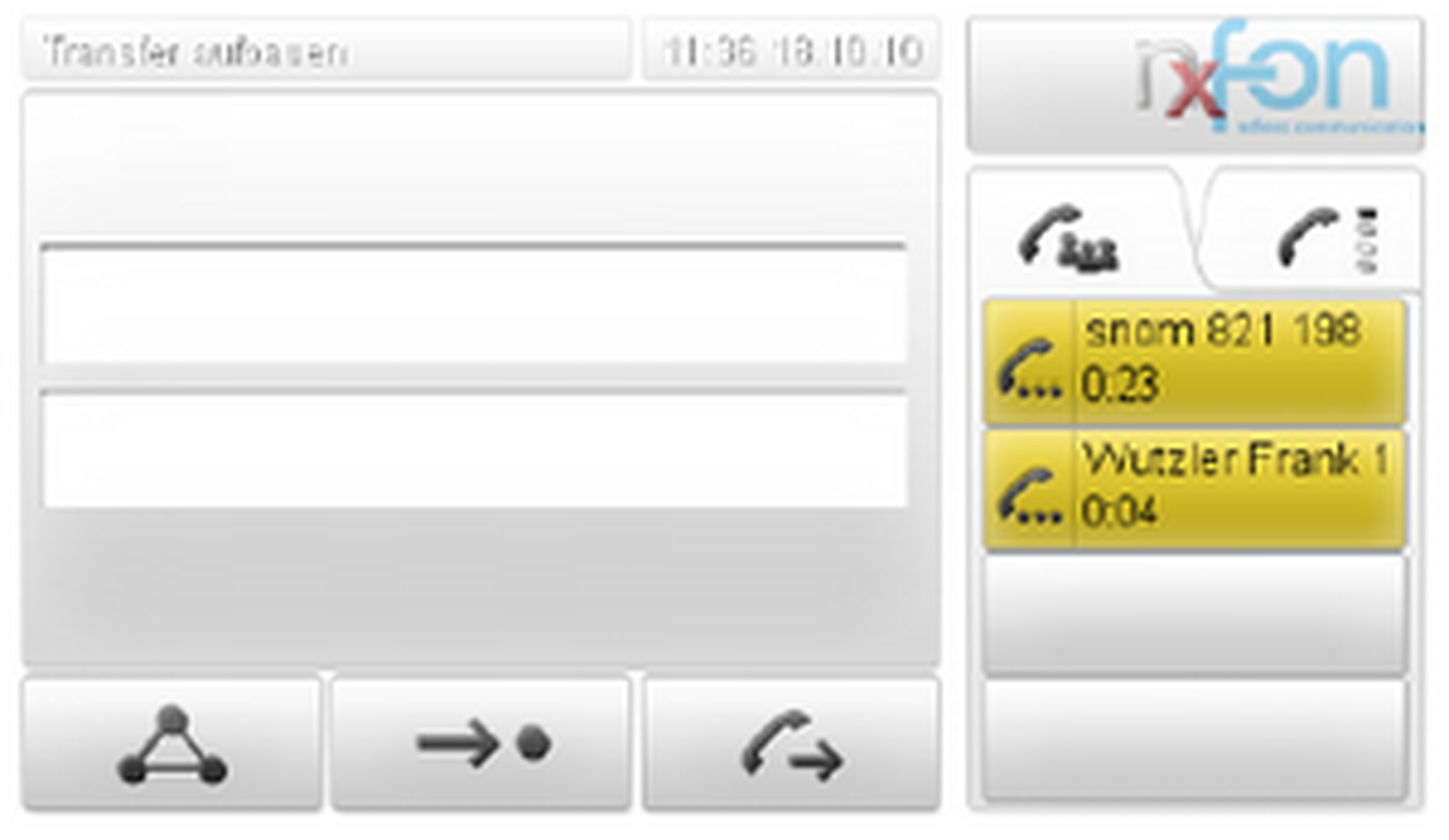 | • Startbildschirm: Liste der erhaltenden Anrufe • Textfelder: Cursor nach links bewegen | Anrufweiterleitung (Transfer) | ||