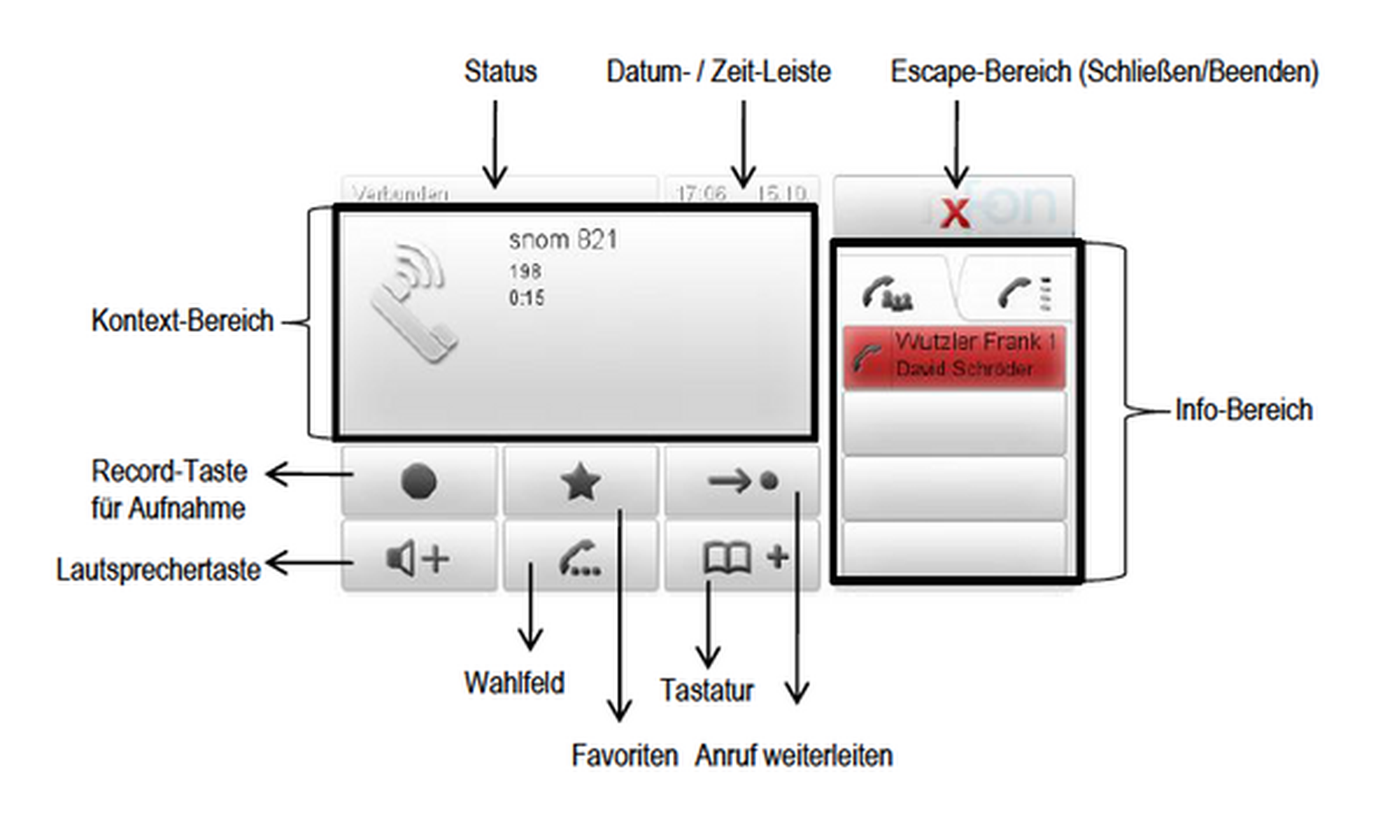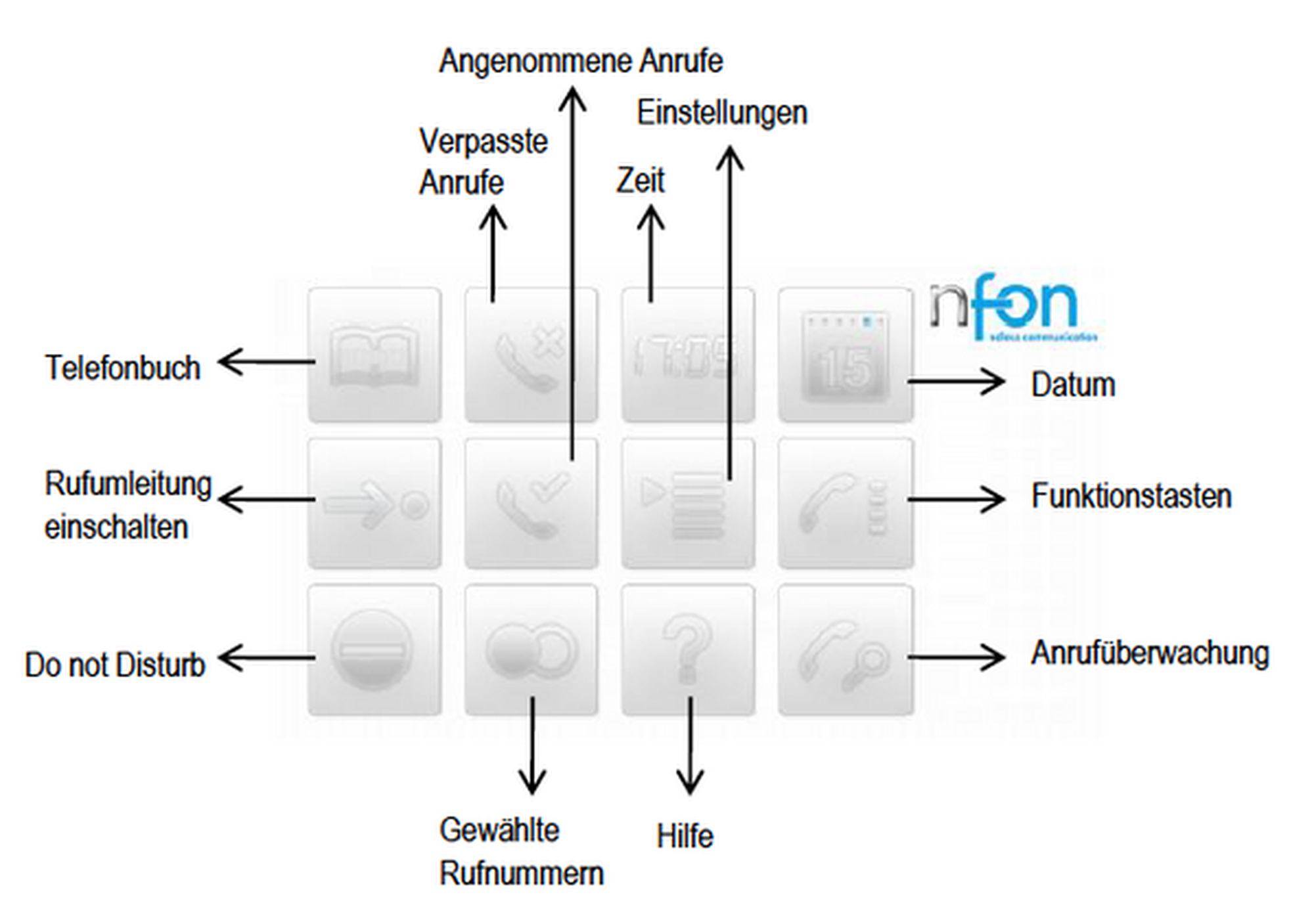 Über den Ruhebildschirm haben sie direkten Zugriff auf die vielen wichtigen Funktionen Ihres snom Telefones.
