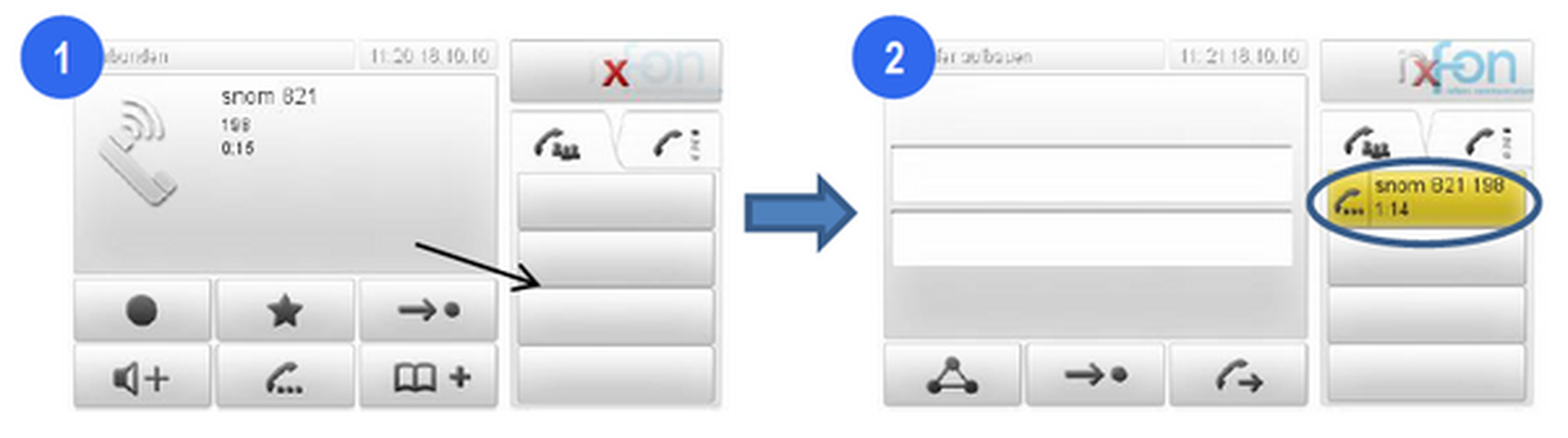 Sie gelangen zu den Funktionstasten (virtuelle Tasten) des snom 870, indem Sie den Button
