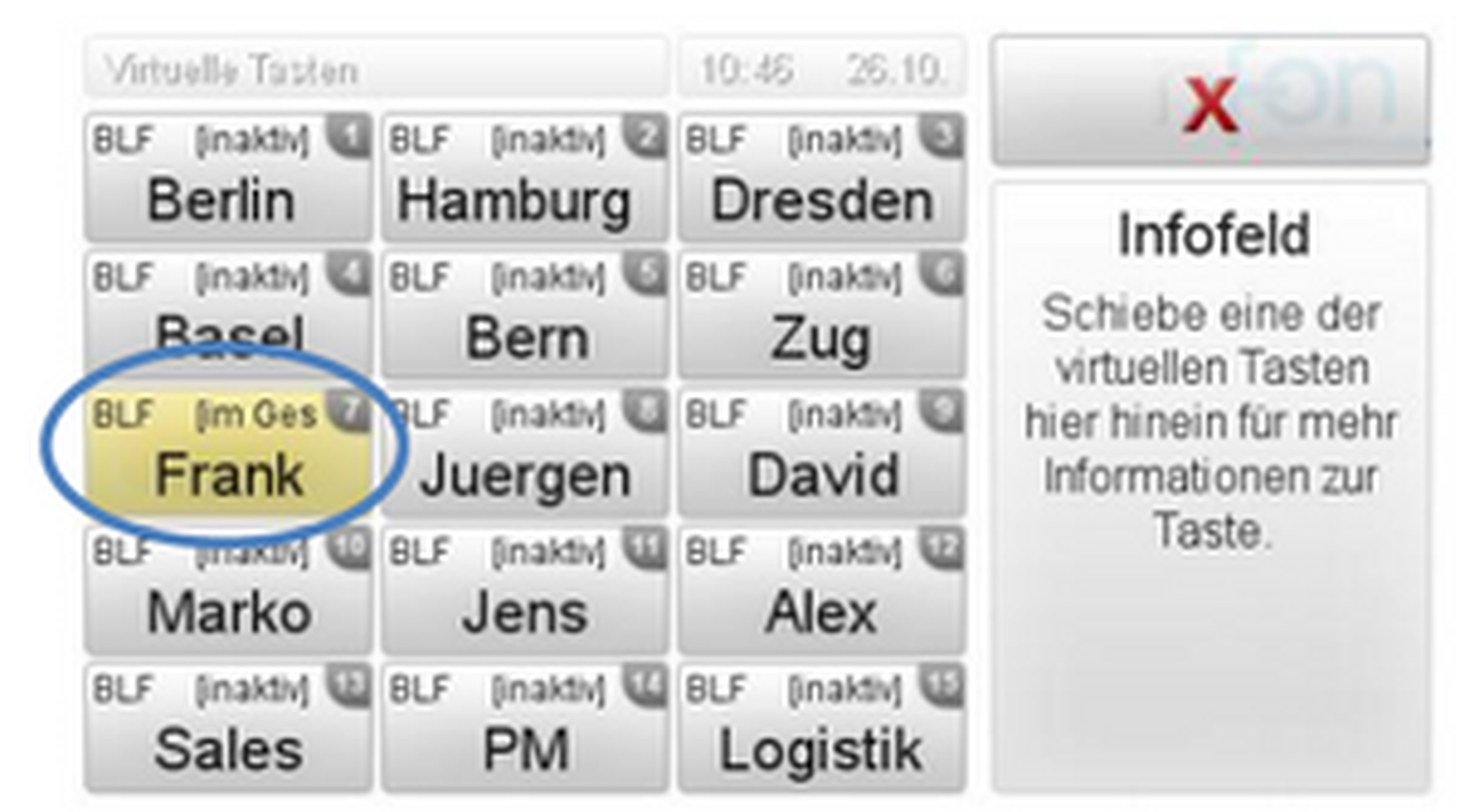 (Für detaillierte Informationen zur Konfiguration von Besetzt-Feld-Lampen, siehe Handbuch Serviceportal)