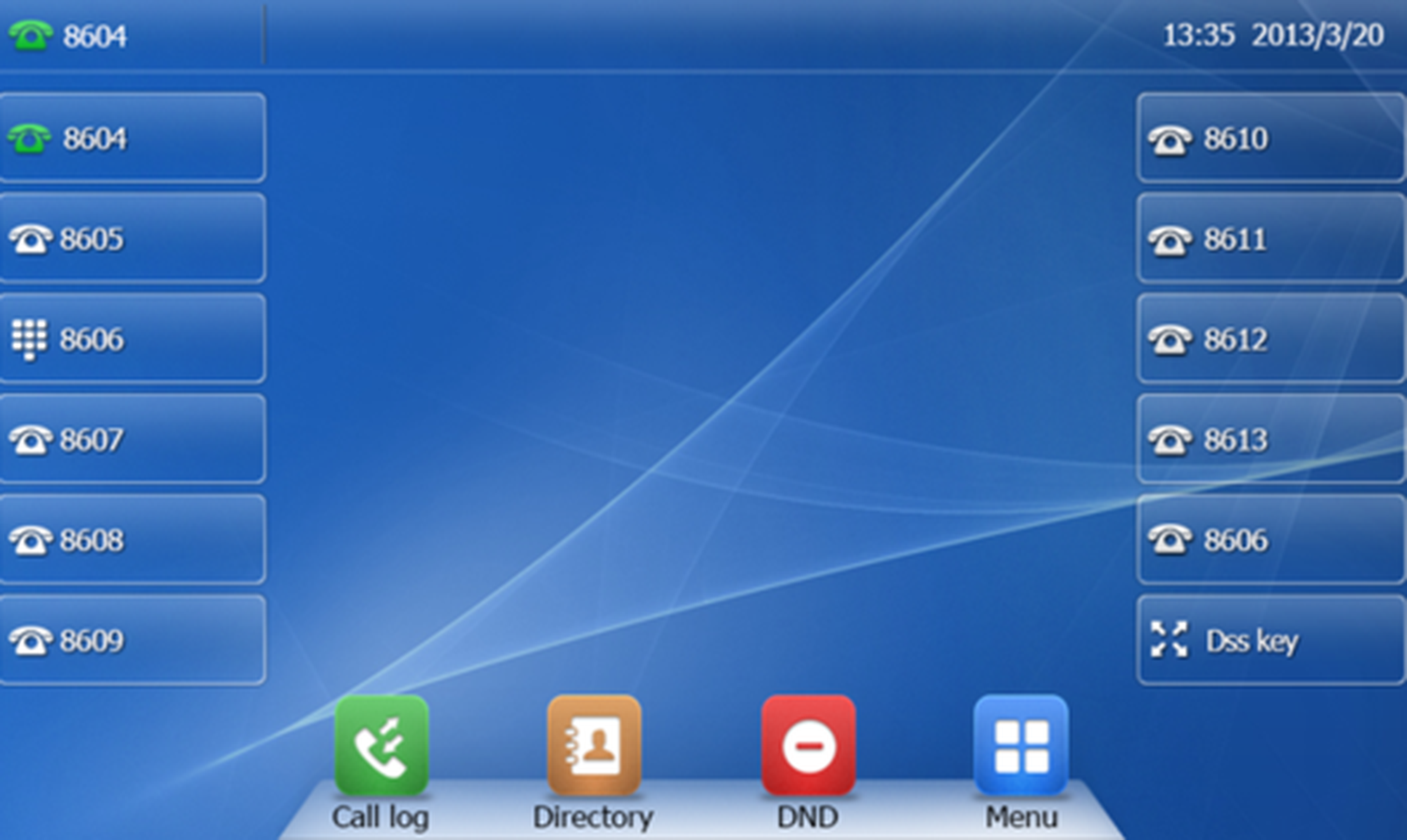 Sie können bis zu 29 Funktionen auf Ihrem Bildschirm speichern. Mit der DSS-Taste auf dem Bildschirm können Sie sich alle Tasten auf einmal anzeigen lassen. Zusätzlich können über das Erweiterungsmodul EXP40 (nur für T46G und T48G) weitere frei belegbare Funktionstasten konfiguriert werden.