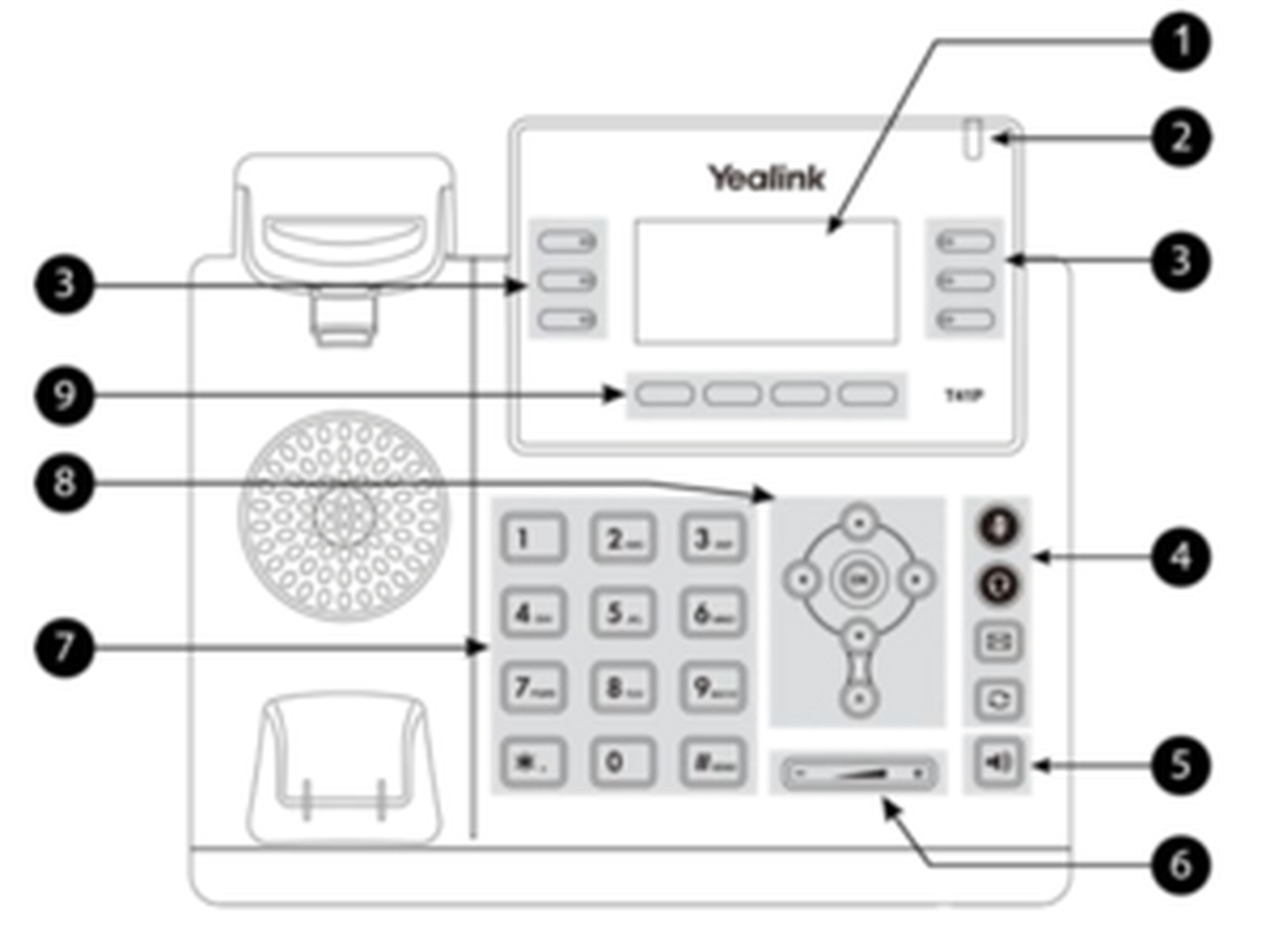 | 6 | Tasten für Headset, Stummschaltung, Voicemail, Wahlwiederholung, Halten und Anrufweiterleitung |