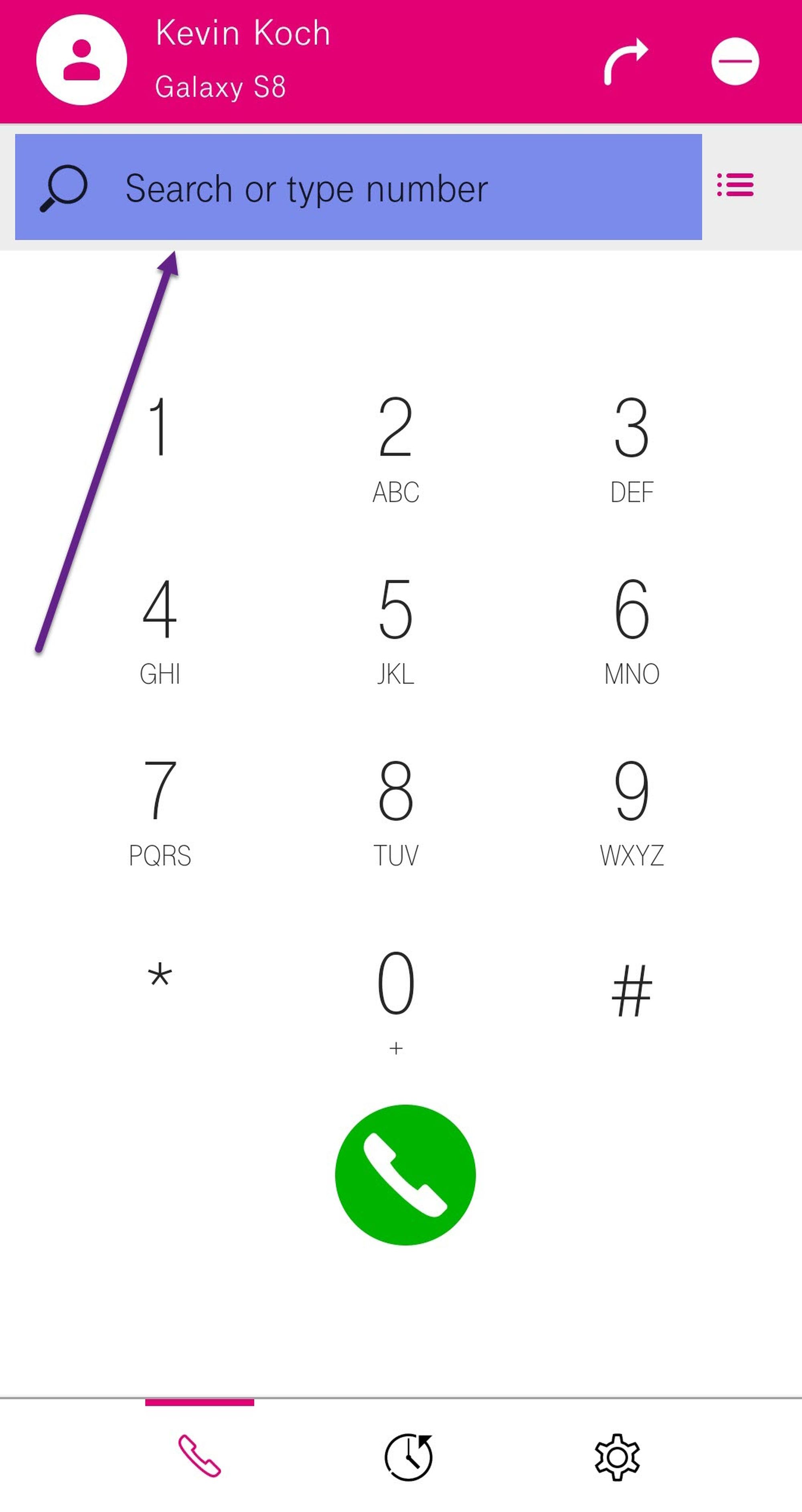 An input field opens up. Here you can now enter your new external number, e.g. a hotel room telephone from the hotel room you are currently staying in.
