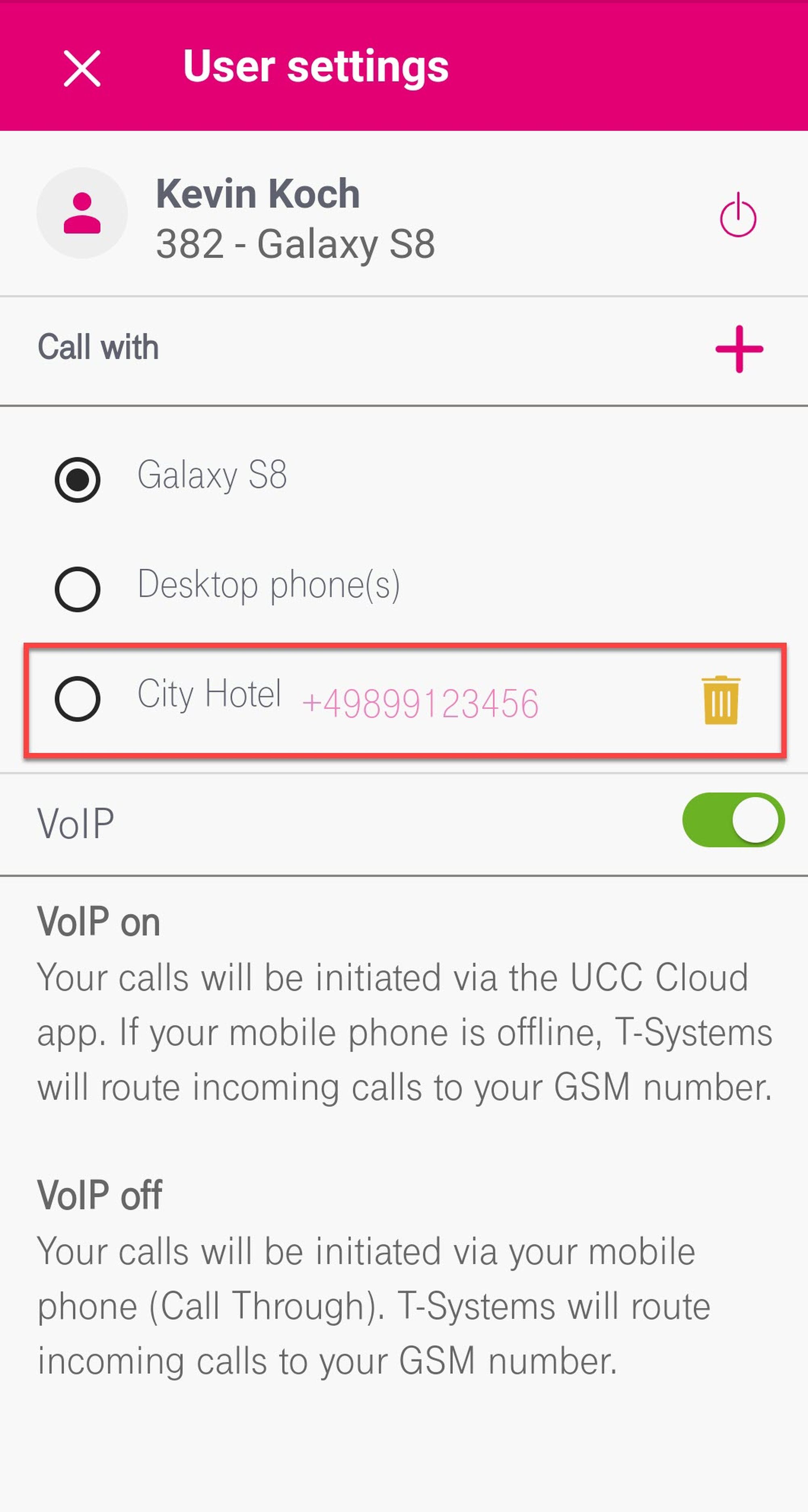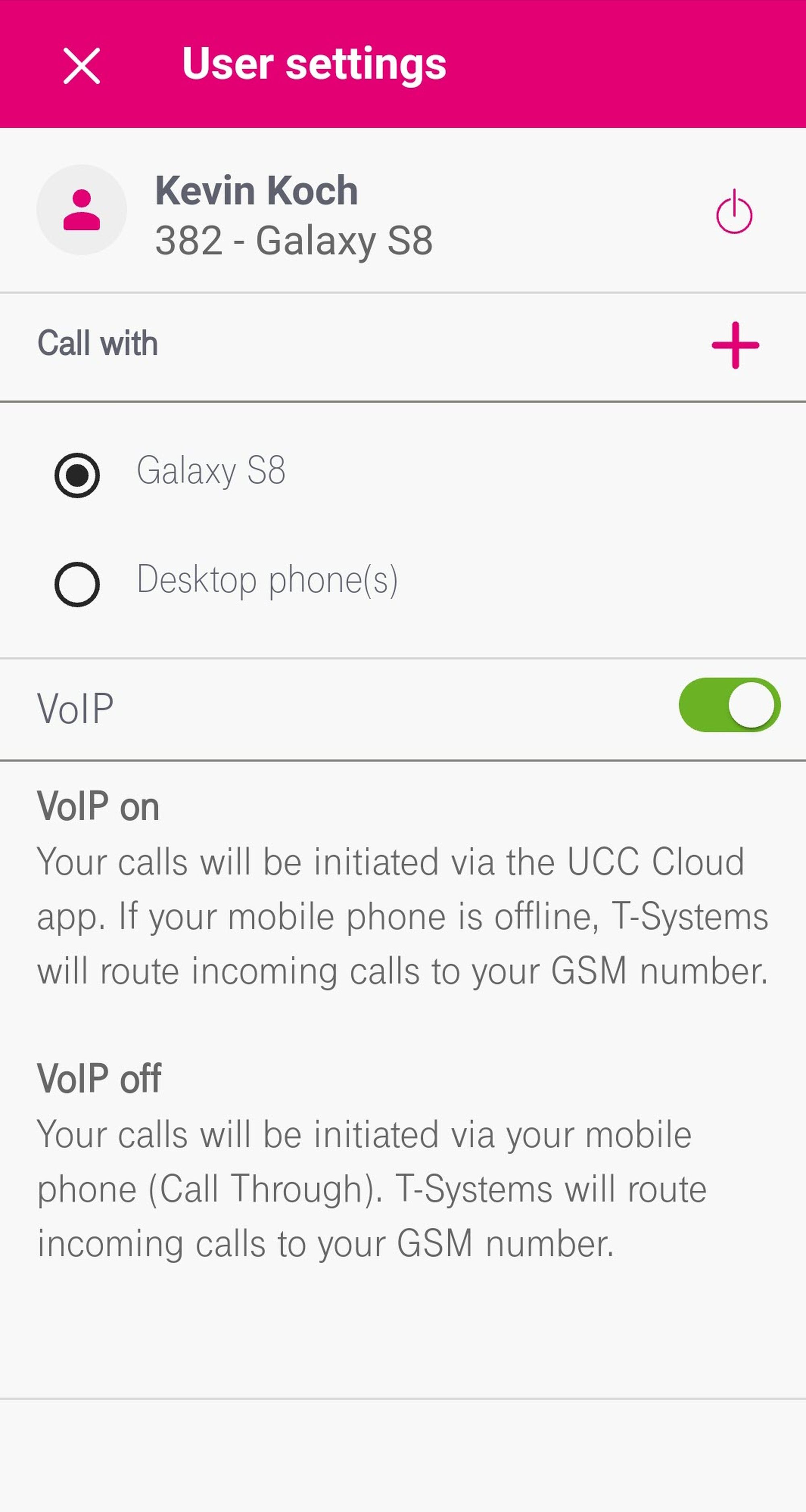 You have the possibility to register your mobile phone number in the app. If the phone number is registered, a call can be continued via the GSM connection if the Internet connection is poor.