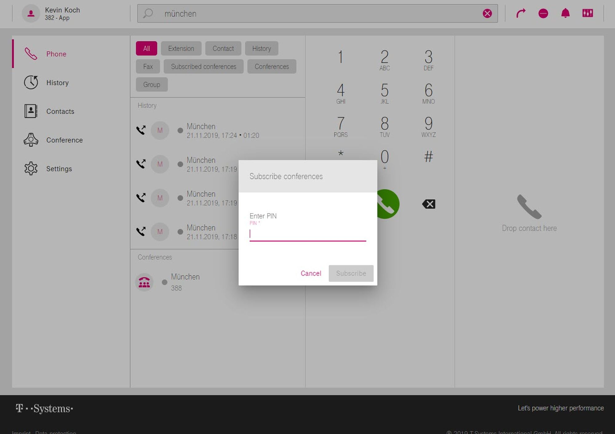 In order to subscribe to a conference, you need to know the conference name or extension number and the conference PIN.