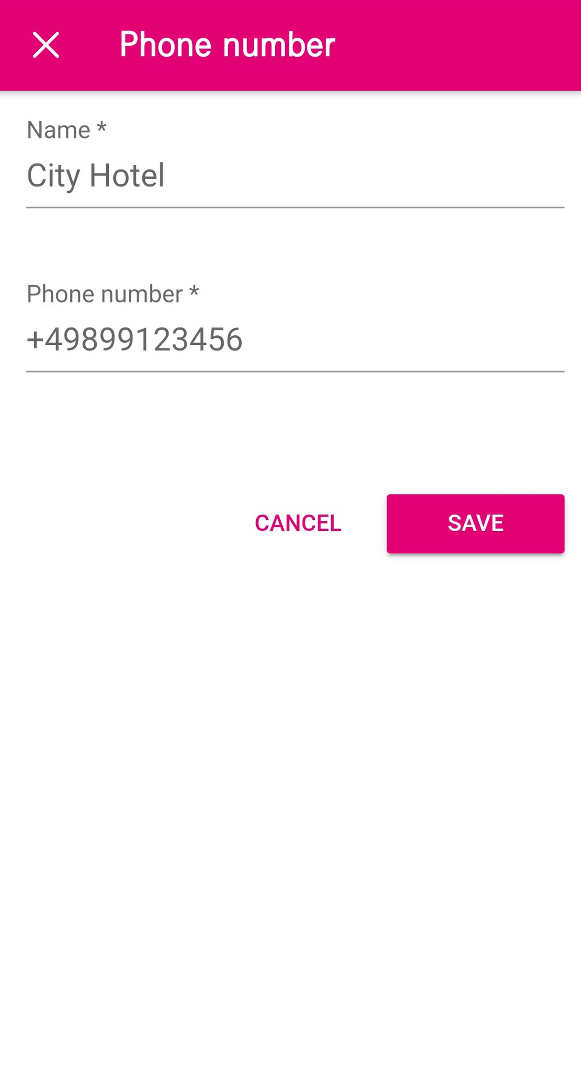 - To make a call via the hotel room number, click on the City Hotel entry.