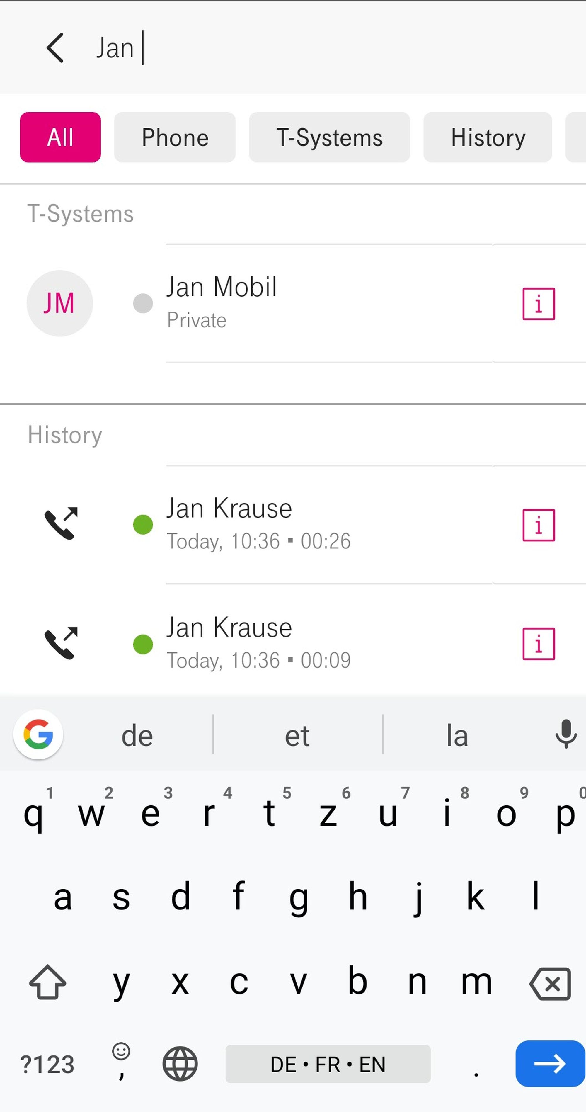- Click on the entry, i.e. the person you want to transfer the call to.