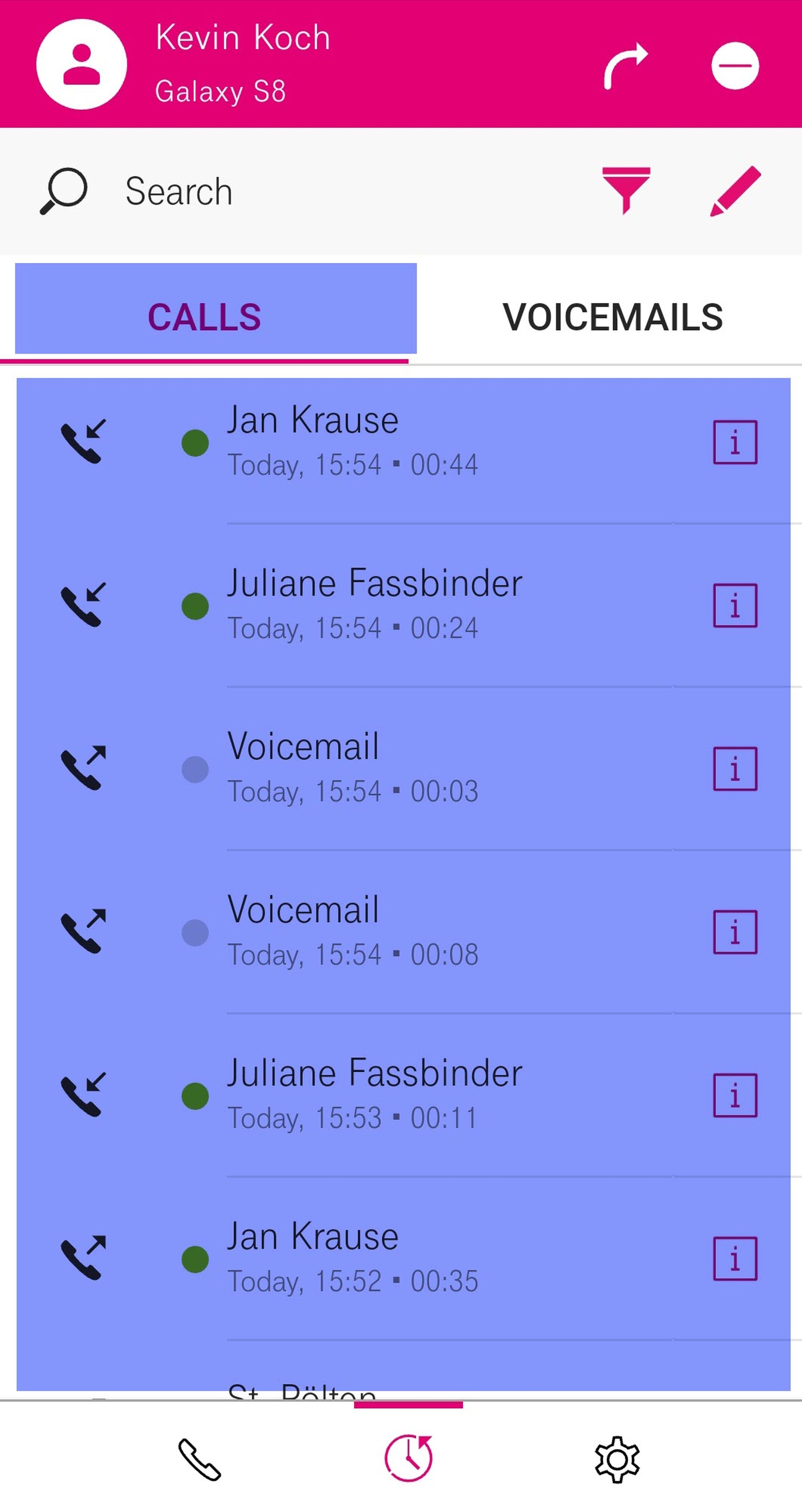 The Mobile App allows you to manage and edit only the default call forwarding profile. You can create your personal call forwarding profiles as well as new call forwarding profiles via the Web App or the Desktop App.