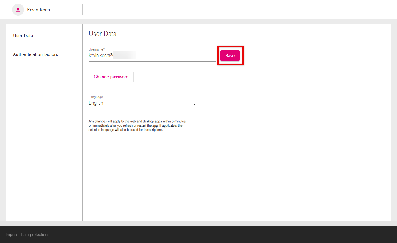 ⇒ The language will be applied to all the affected web and desktop apps automatically within 5 minutes, or directly after refreshing or restarting the respective app.