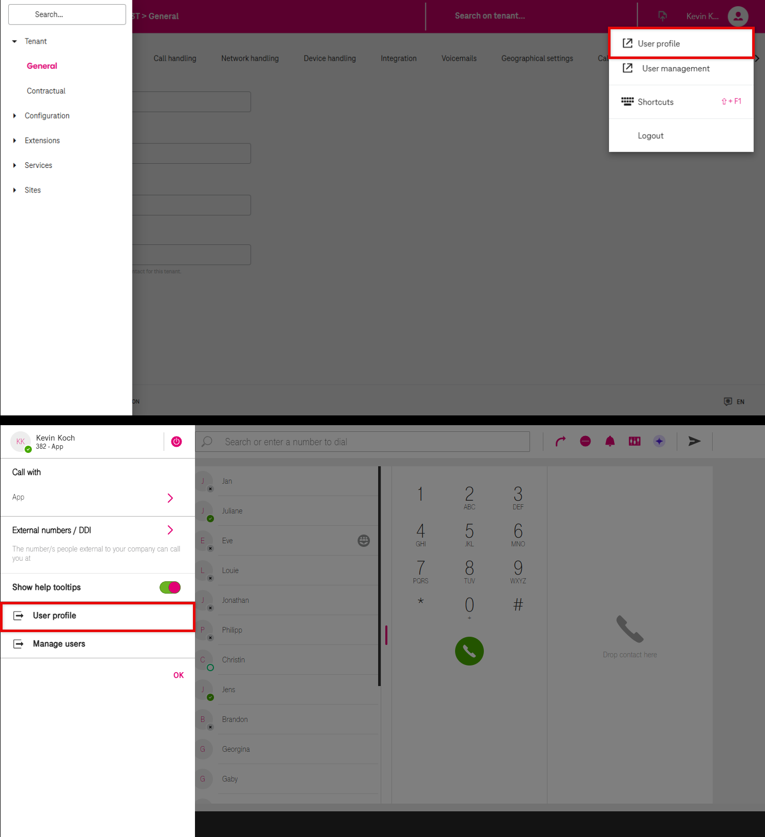 User Profile Application is the global user profile for the NFON X powered by Telekom app suite.