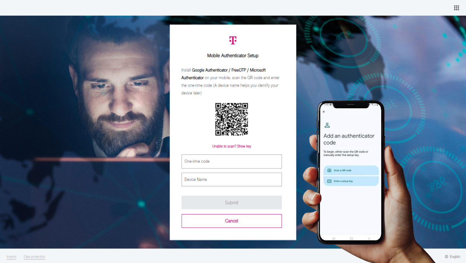 ⇒ The mobile authenticator setup will open.Open your authenticator app.