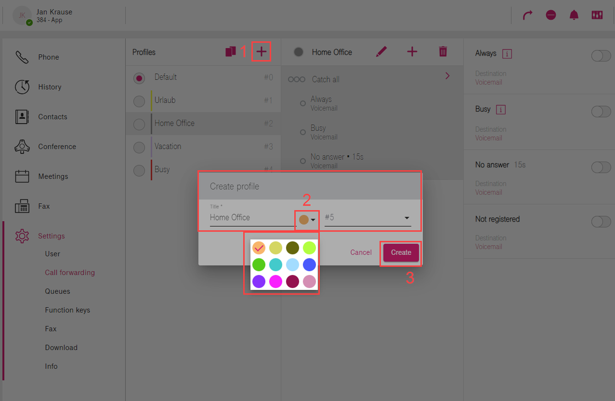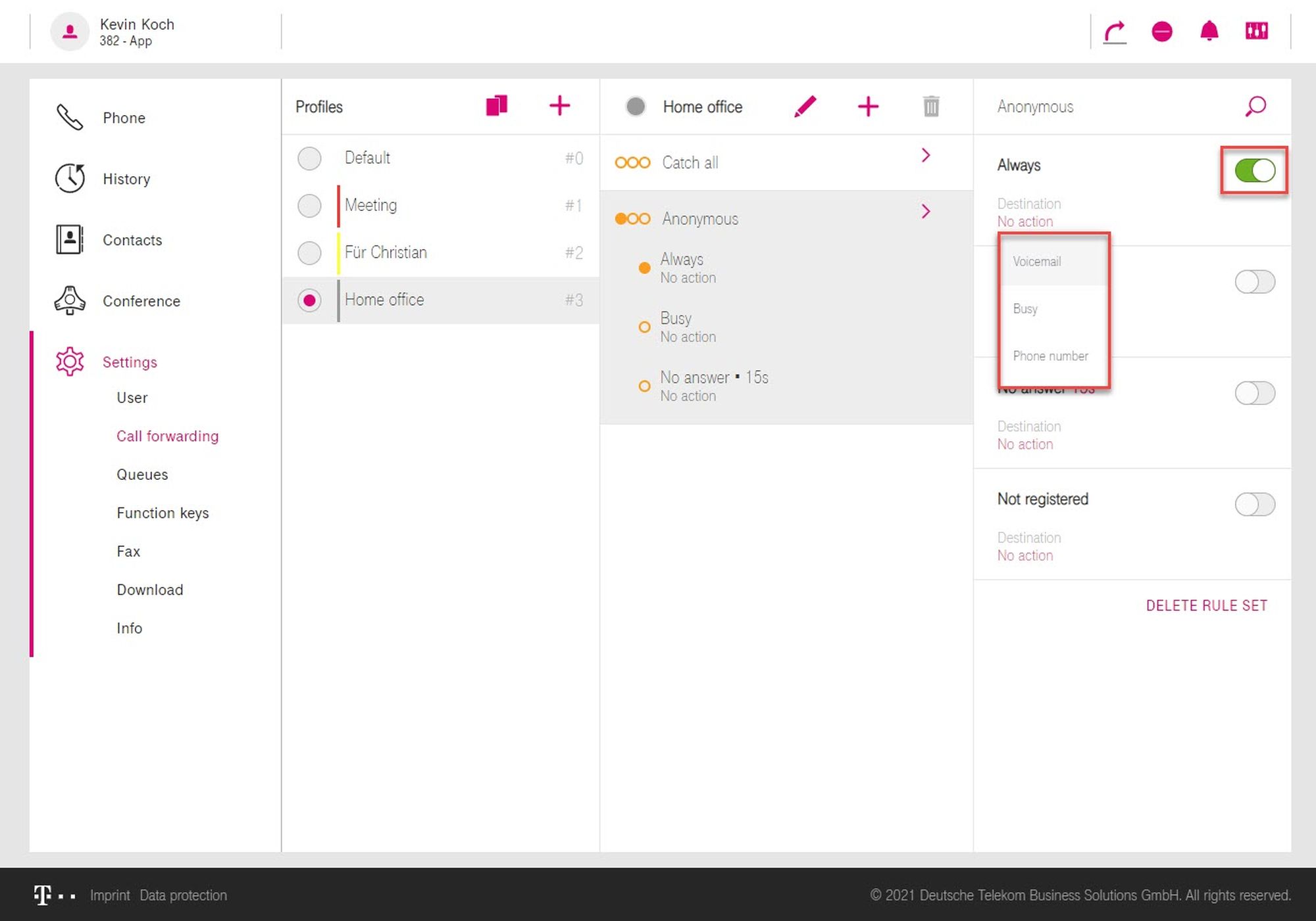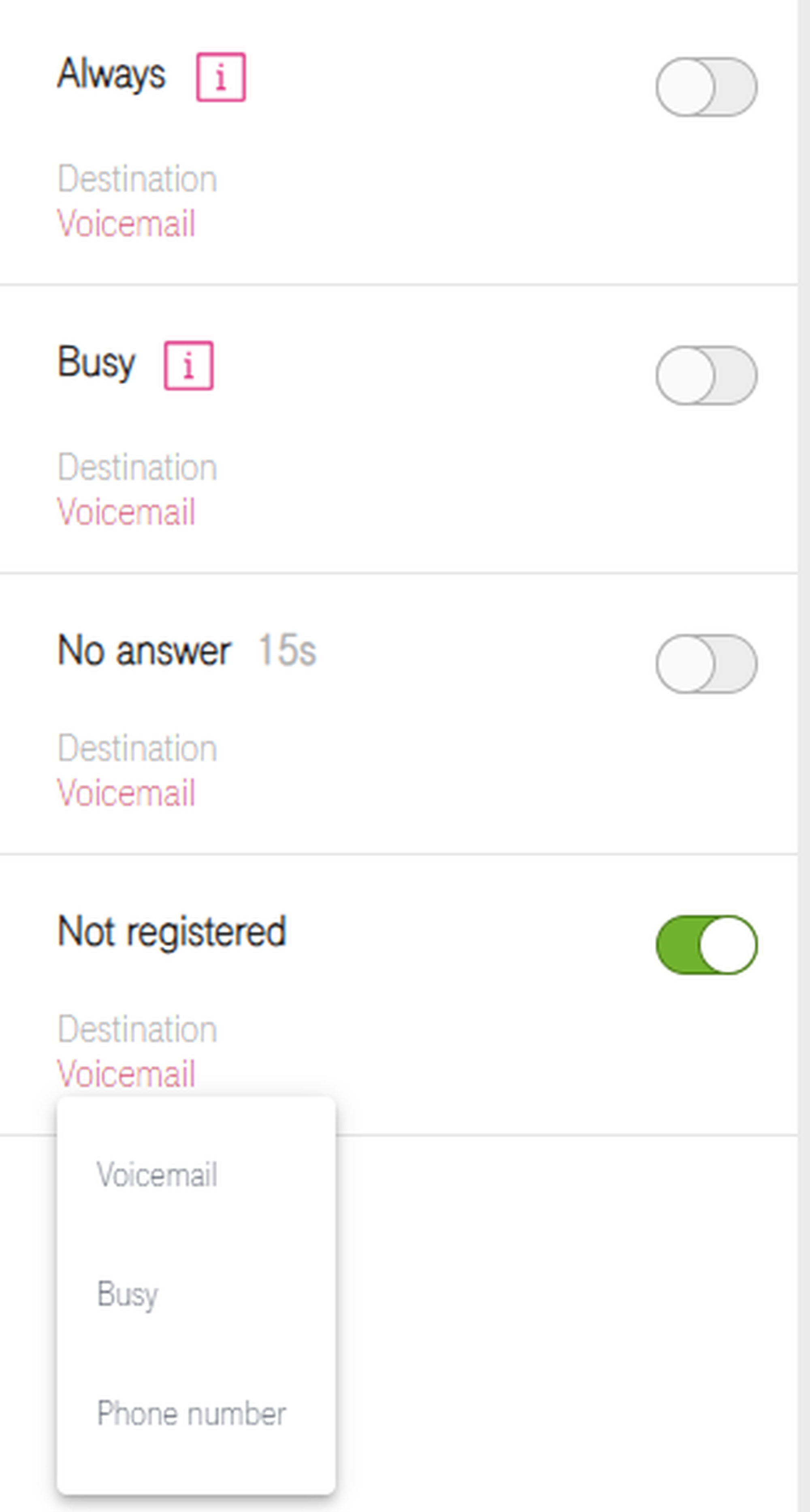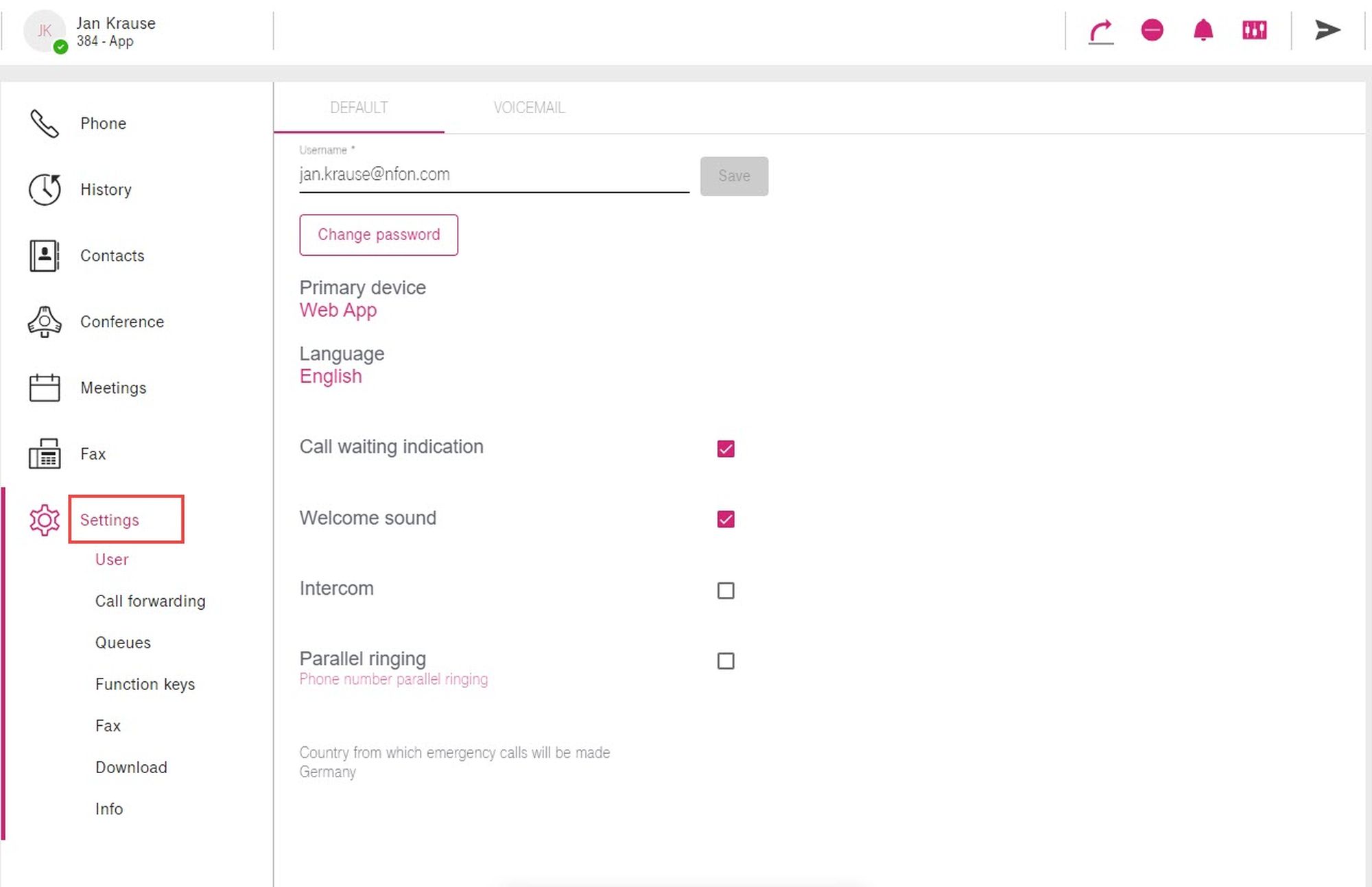 Per default, the app is set as your primary device – the target you will call with. This means, once you have an incoming call, your app will ring. If you want to change this, select a different device.
