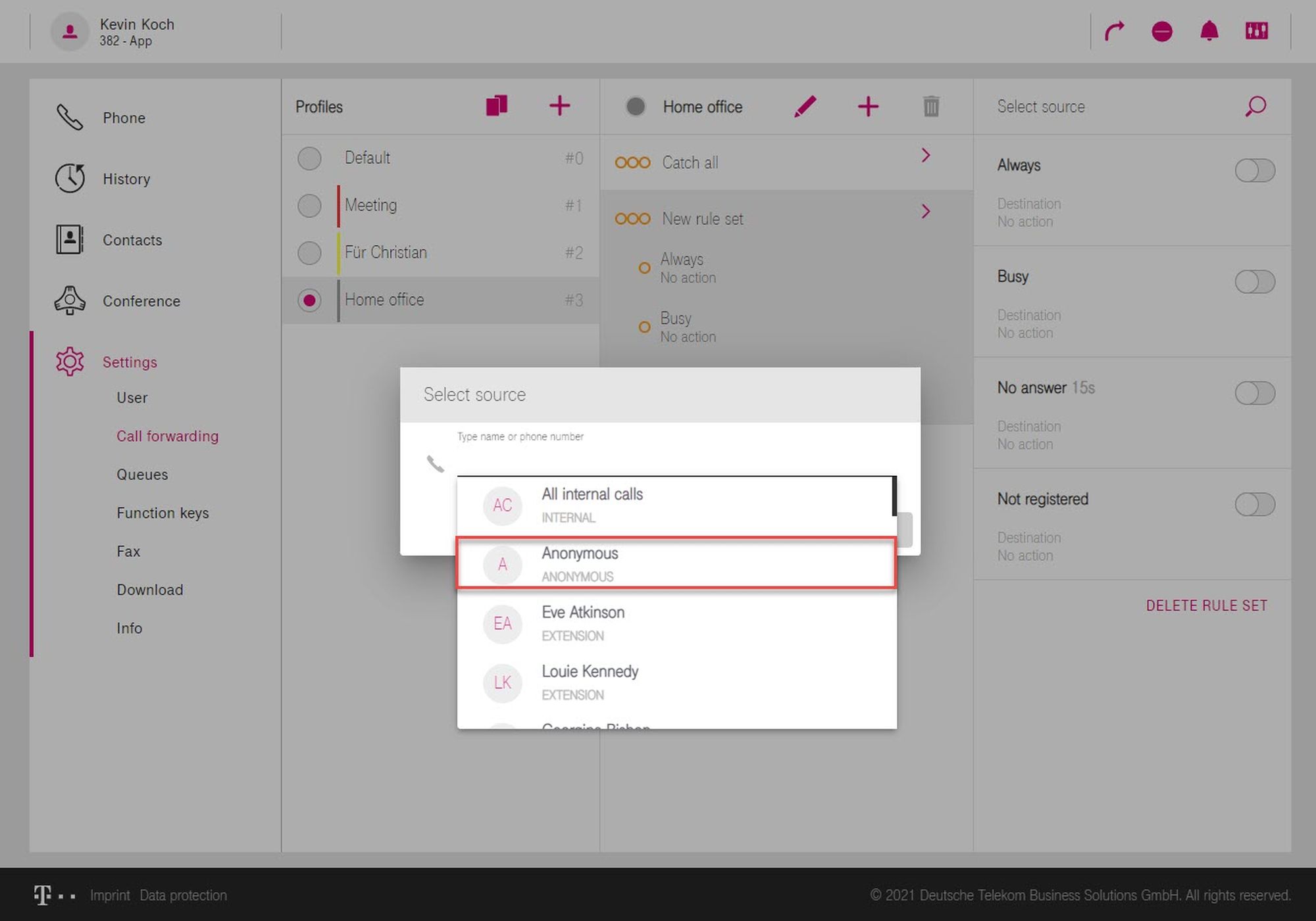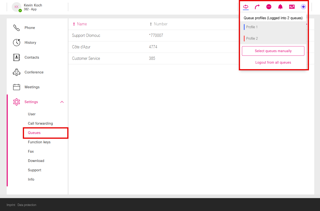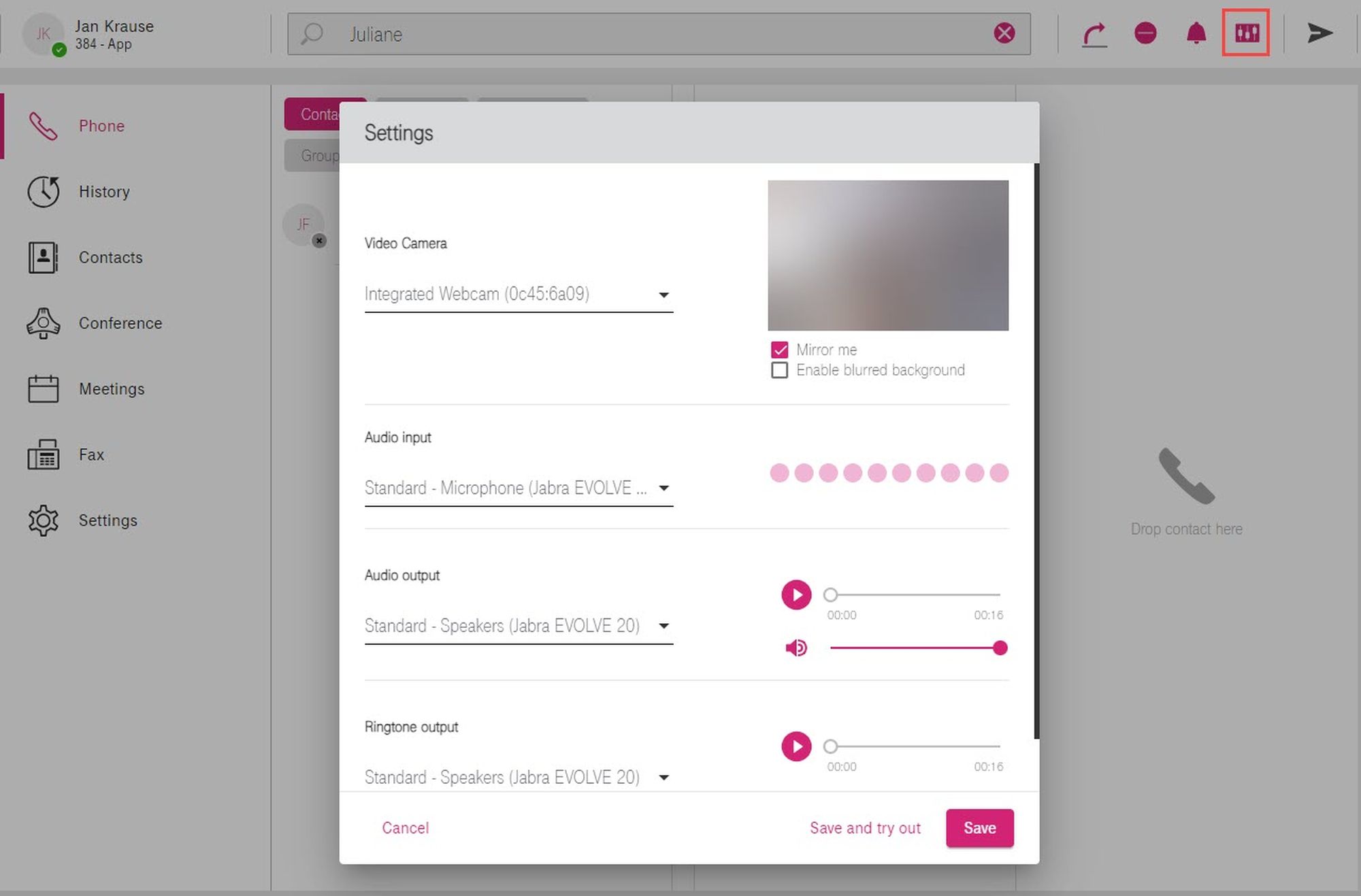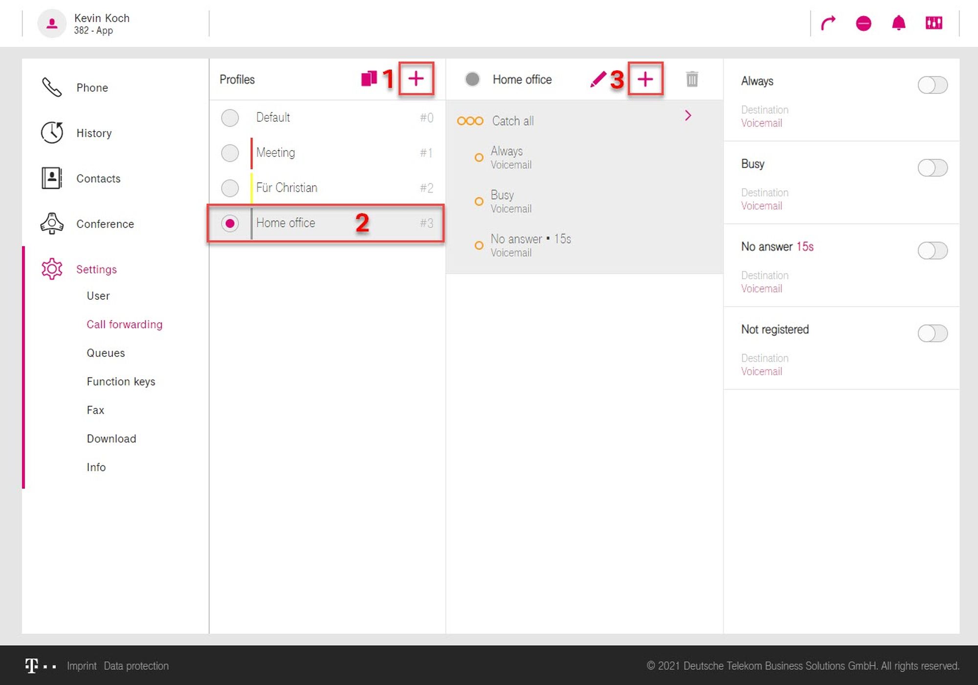 Per default, the app is set as your primary device – the target you will call with. This means, once you have an incoming call, your app will ring. If you want to change this, select a different device.